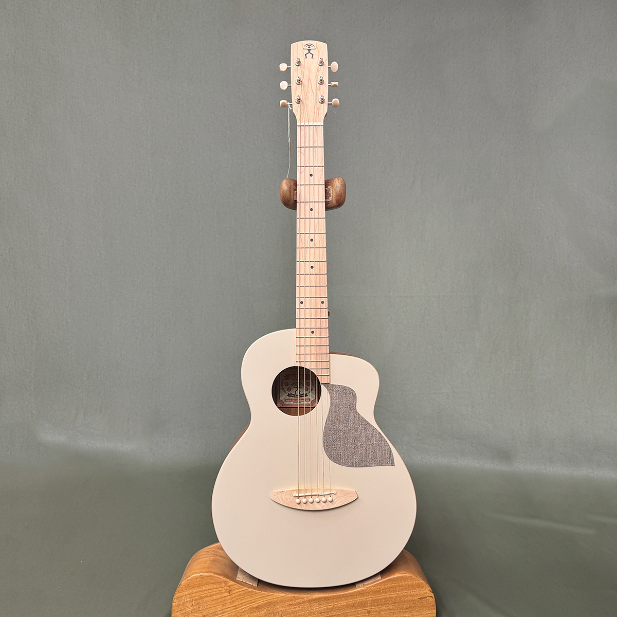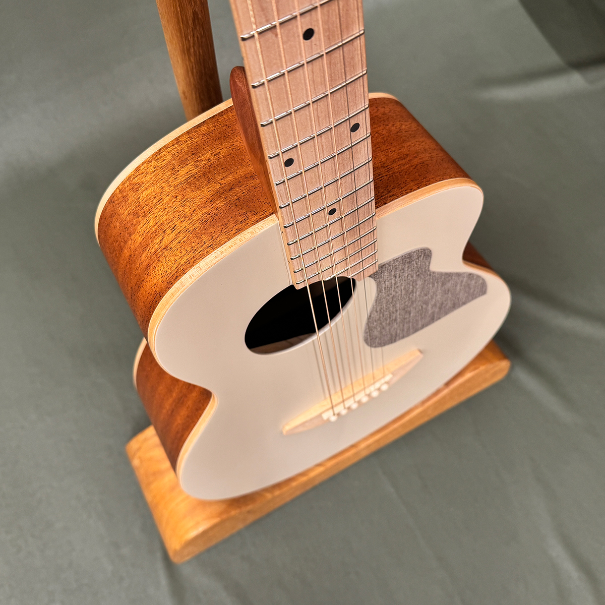 ウクレレ専門メーカーのアヌエヌエが独自のデザインをアイデアを集結させて発売した、ミニギターよりも少しだけ大きめの、大人の方でも抱えやすいと評判のスモールサイズ。ボディージョイントを片方だけ段差をつけることにより、カッタウェイのような演奏性を実現。曲げを入れたデザインよりもお安く提供することができました。