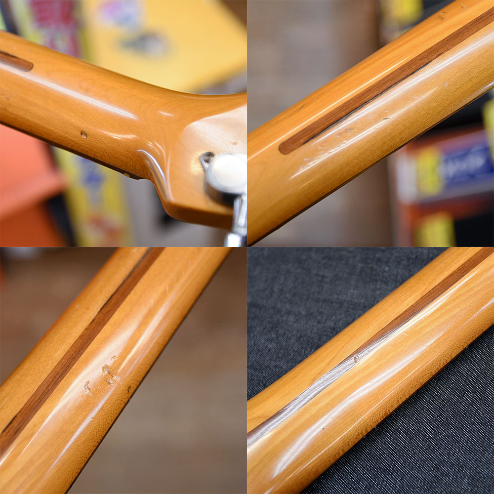 【状態】擦り傷や打痕等が多数あります。ネックに反りはなく、トラスロッドも余裕があります。フレットの残りは7割程度です。※ブリッジコマ交換、スカンクラインリペアあり、裏パネ欠品、PG下ビス1カ所修正ありソフトケース付属