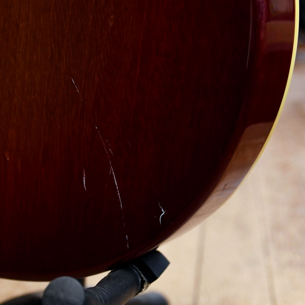 【状態】擦り傷や打痕等が多数あります。ネックに反りはなく、トラスロッドも余裕があります。フレットの残りは6割程度です。ソフトケース付属