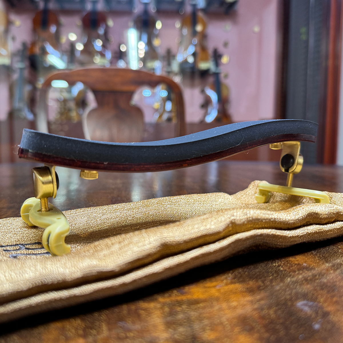 美しい木製フレームと高い安定性を兼ね備えた、プロ・アマ問わず人気の肩当てです。