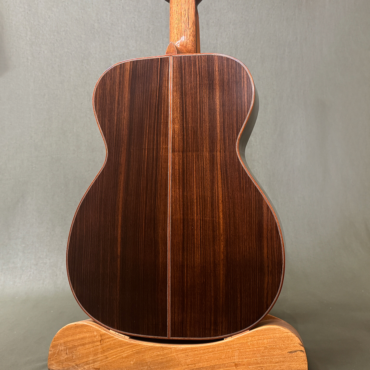その中でも未来のマスタークラフトマンと謳われる、道前氏によって製作されたインドローズ単板をサイドバックに用いたOMが入荷しました。