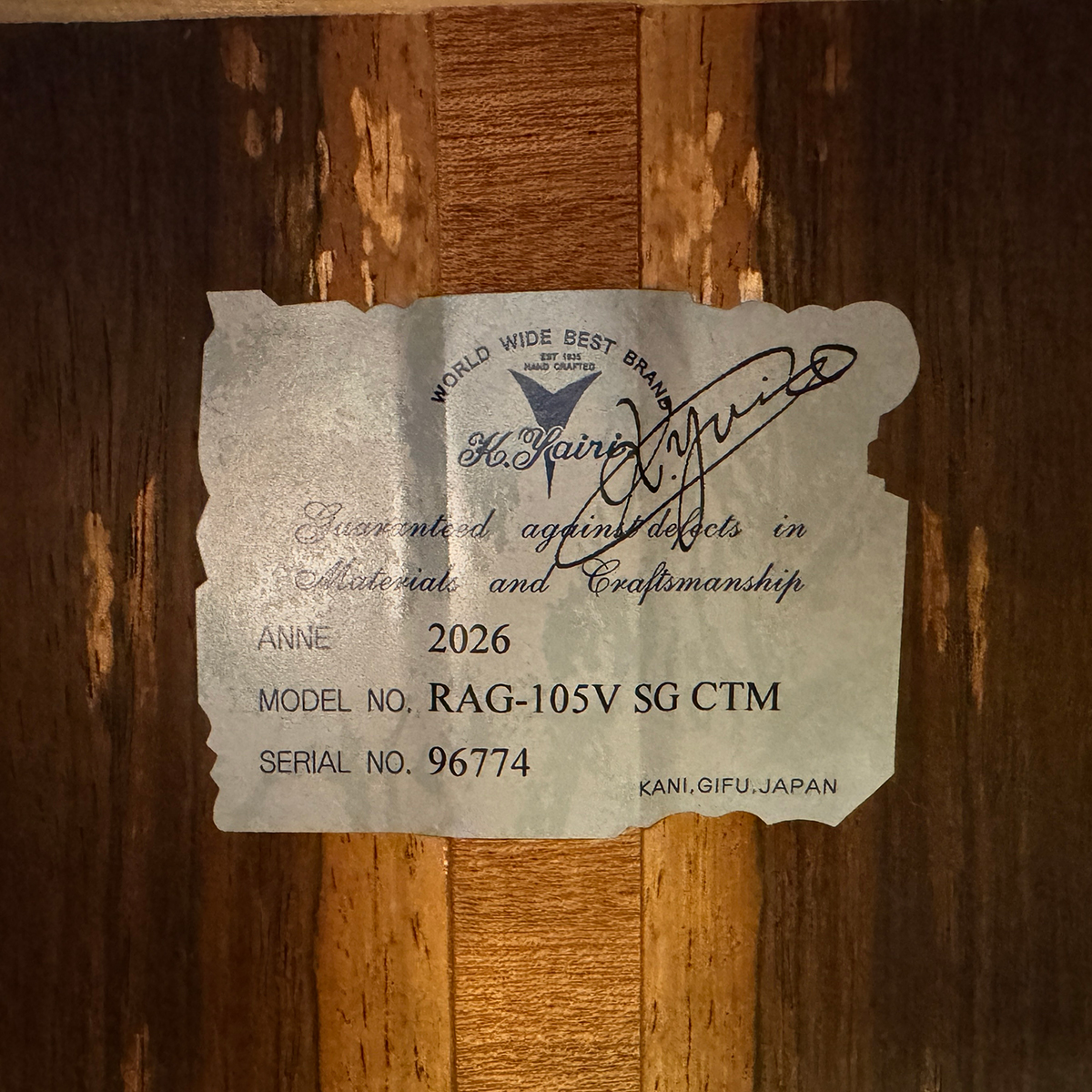 新品のヤイリギターにはすべて永久保証が付属し、長く安心してお使いいただける点も大きな魅力です。