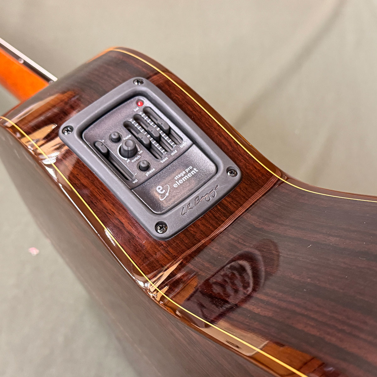 限定生産となりますが、生音でも楽しめる全面単板、L.R. Baggs Element Stage Proを標準装備したエレガット仕様です。(通常はElement VTC)サザンオールスターズの桑田氏が使用しているヤイリギターのエレガットのように、ヘッド中央に矢じりインレイを埋め込みました。