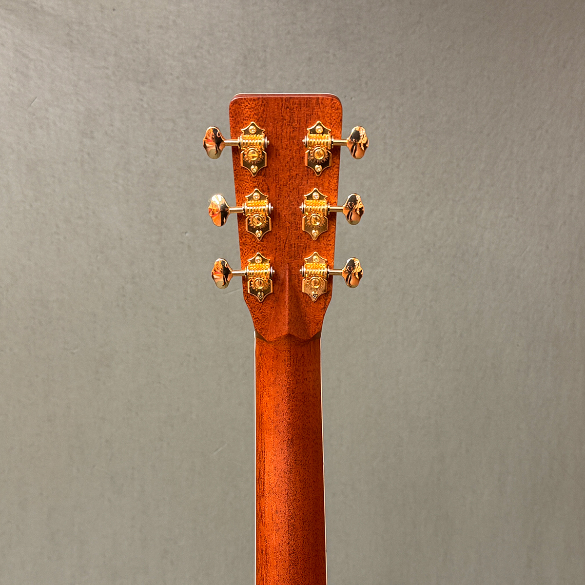 YW-1000は通常42mmの極細ネックで作られます。バックのハカランダも希少であるということから3ピースでの生産となっておりましたが、交渉の結果、下倉楽器では70年代と同様に2ピースバックを更に数あるヤイリギターのハカランダのストックの中から、特別に選定して、納得のいく強烈な木目の物だけを使用して製作していただきます。マーティンやその他のブランド同様幅広ネックを求めるプレイヤーが多いことから、44mmで特注し、ヘッドの上下部幅を狭めることでヘッド落ちに対応した軽量化を図りました。長時間弾いても疲れないのが理想です。