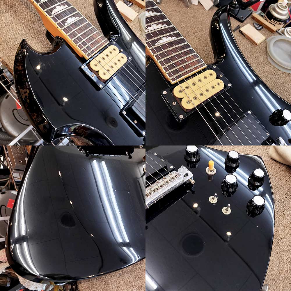 【状態】擦り傷や打痕、塗装欠け等が多数あります。ネックに反りはなく、トラスロッドも余裕があります。フレットの残りは7割程度です。ソフトケース付属