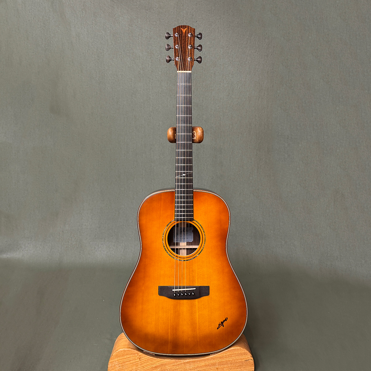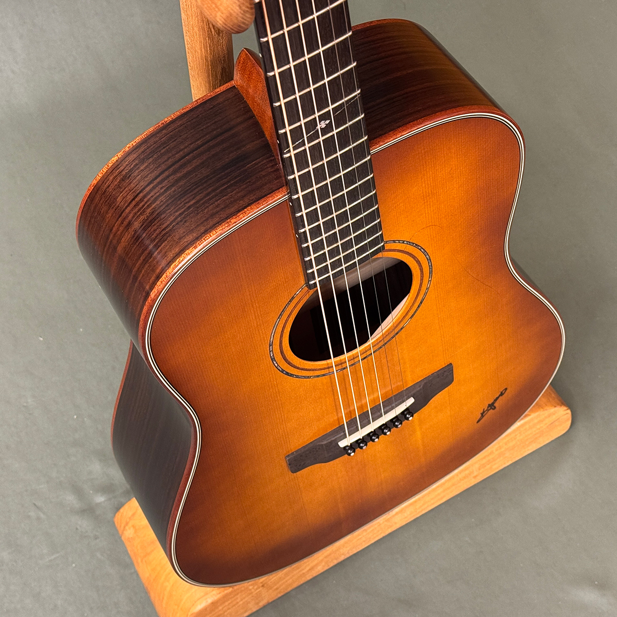 スプルース/インドローズの全面単板であり、純国産ヤイリギターの職人の手によってハンドメイドで組上げられる、ヤイリギターの中でも特に人気のモデルです。元々欧米人向けで考えられた、ドレッドノートサイズをひと回り小さくした、日本人向けのボディーサイズとして、70年代後期に先代のヤイリ社長の考案がもとで開発されたモデルとして、ヤイリ独自ボディーライン四天王の一つです。