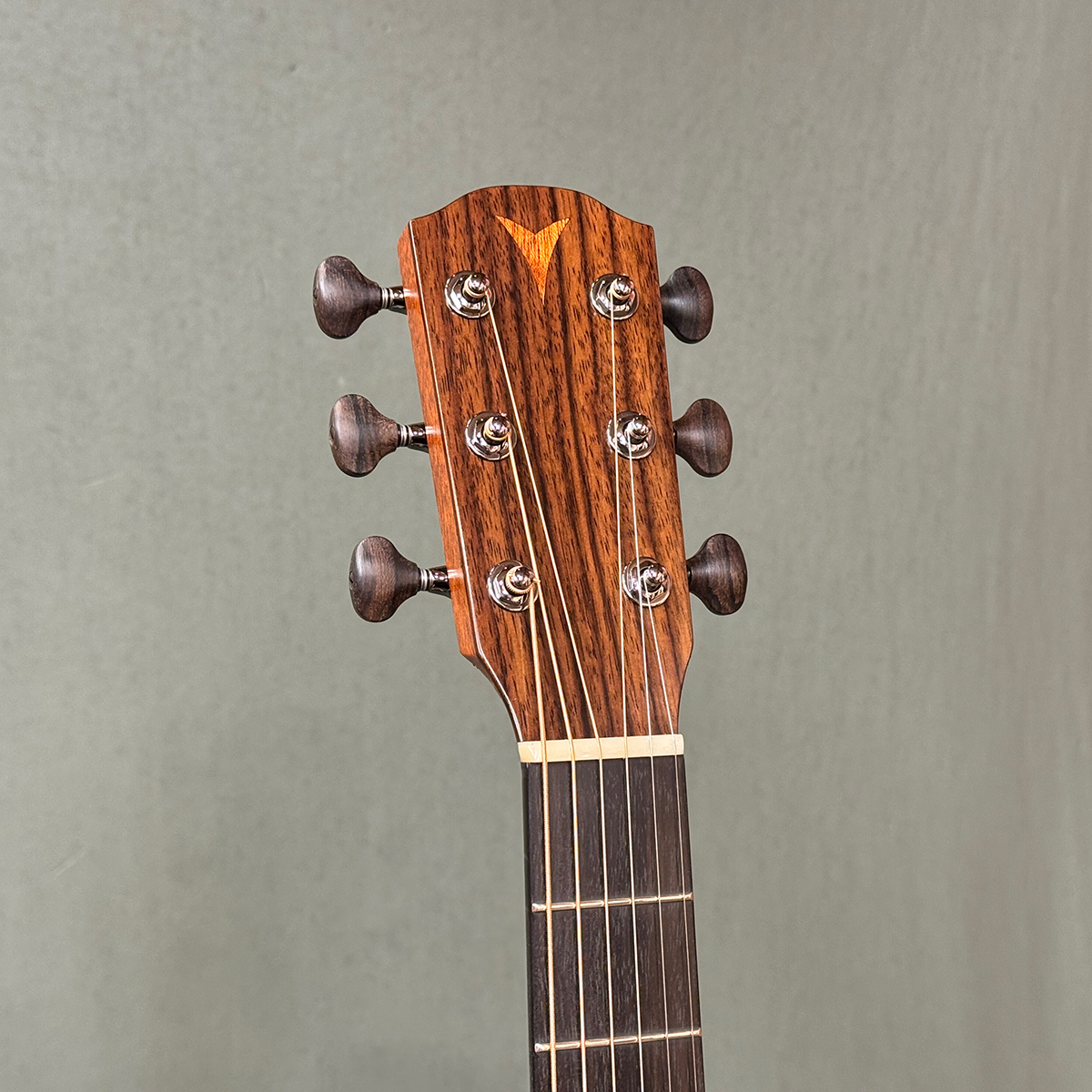 アコギはサウンドが命ですが、ヤイリギターの表板(スプルース単板)は、かなり長い年月シーズニングを行っている為、耐久性に加えて、大変よく響きます。小振りなボディーであり尚且つ静かに弾いたとしても、はっきりをクリアにサウンドをとらえることが出来ます。