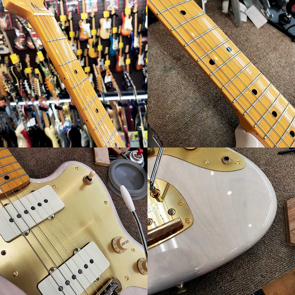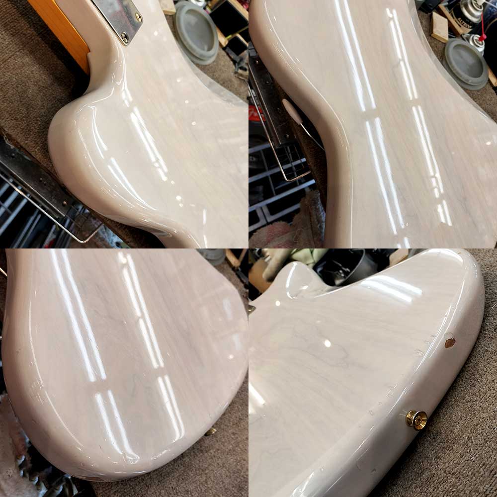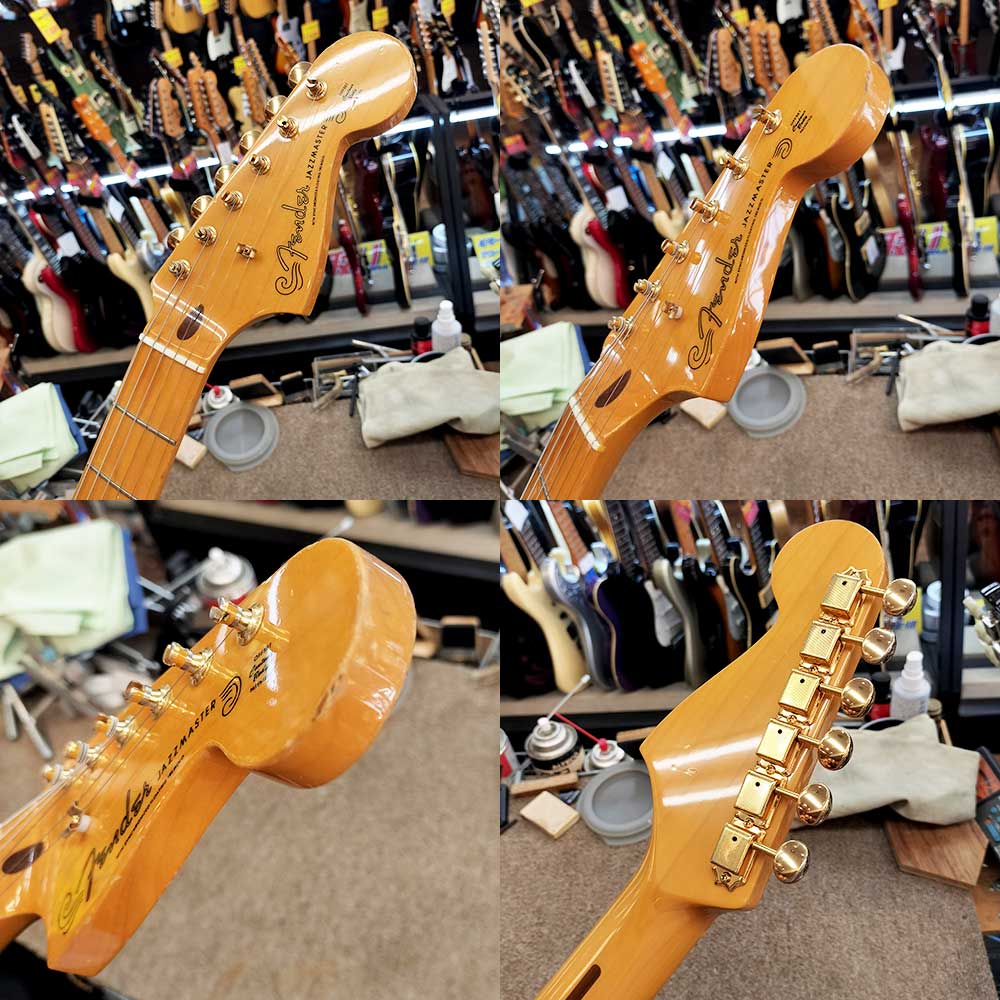 【状態】擦り傷や打痕、塗装割れ等が多数あります。ネックに反りはなく、トラスロッドも余裕があります。フレットの残りは6割程度です。オリジナルソフトケース付属