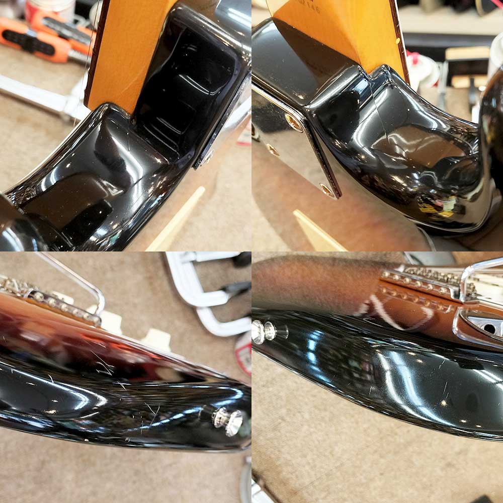 【状態】擦り傷や打痕等が多数あります。ネックに反りはなく、トラスロッドも余裕があります。フレットの残りは6割程度です。※ビス・ジャック交換ソフトケース付属