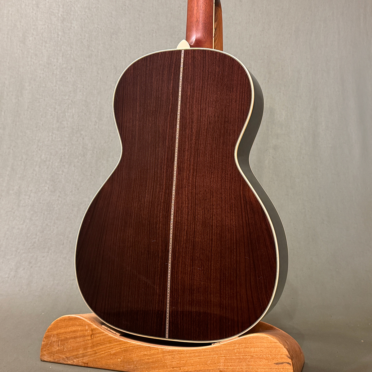 通常のニューヨーカーとは異なり、14フレットジョイントです。ブレットシェイプのまま接続を14フレットにしていますので、他社製の00に比べても音量があります。