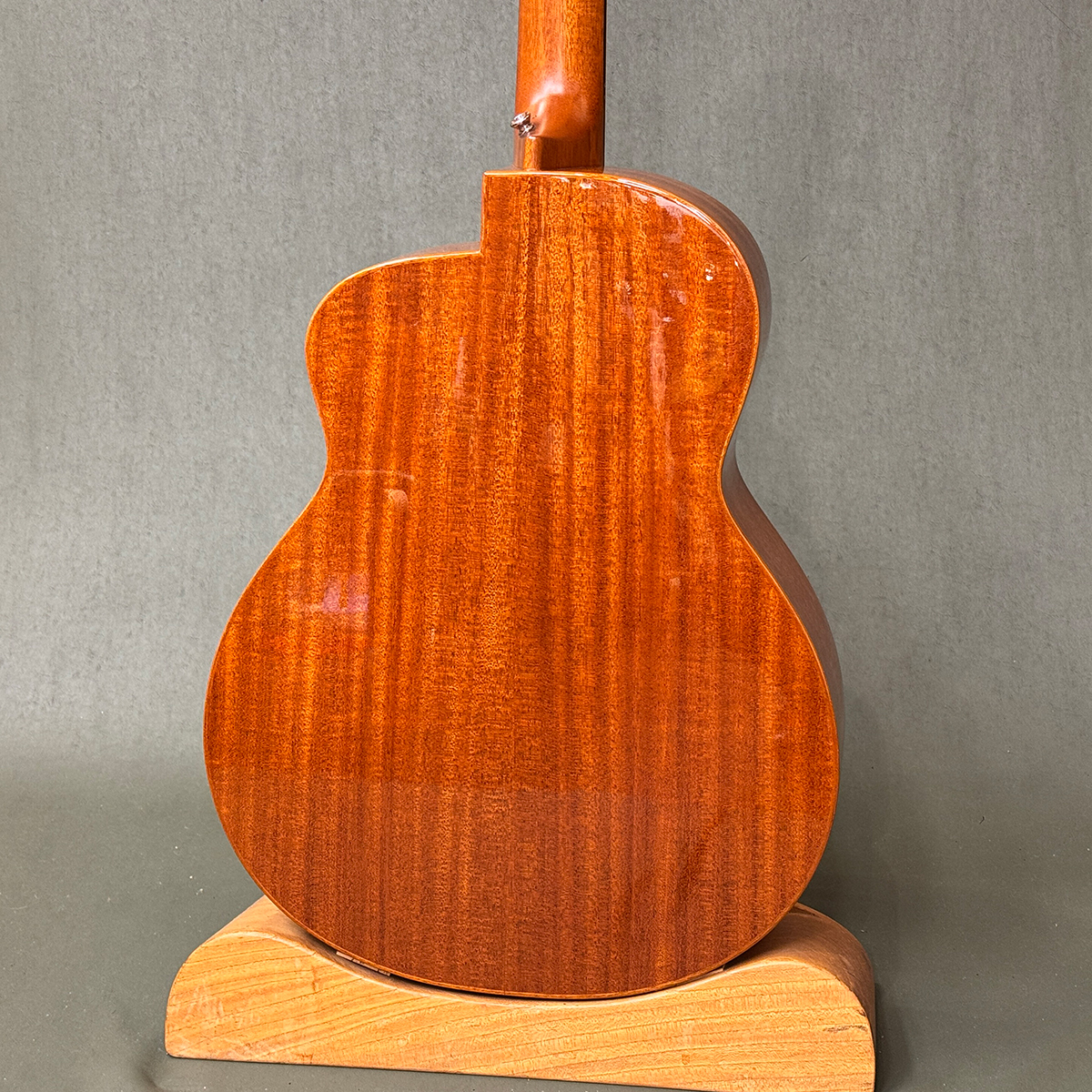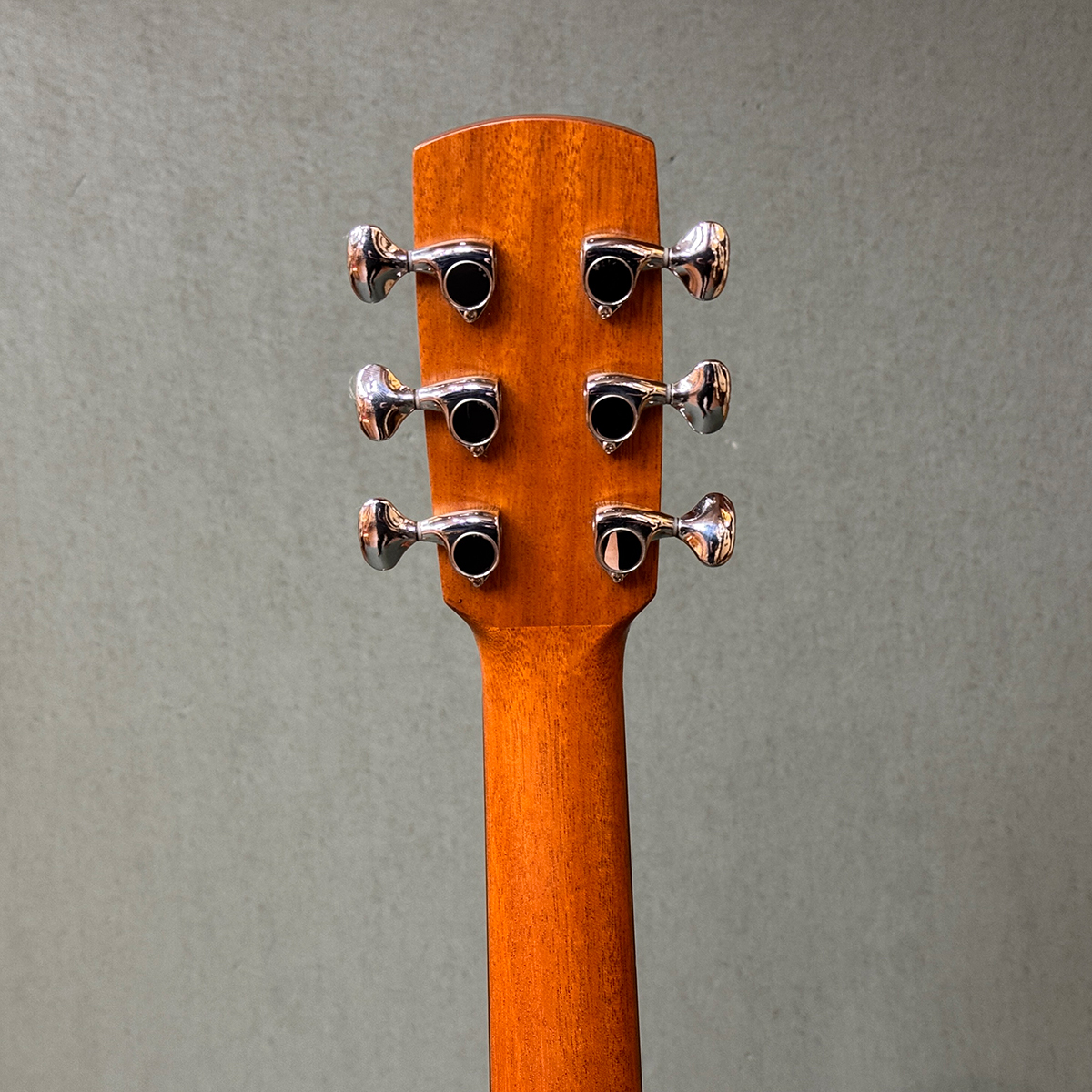2021年のアプグレードより、確実にサウンドが変わったと、国外内で評価の高いLシリーズ。個人製作家の杉田健司氏とのコラボレーションで、ブレーシングなどの構造を見直し、格段にレベルアップしたことにより、これまでの同価格帯の全面単板モデルの常識を覆したといわれています。エボニー天神とスポルテッドマンゴーの口輪がルシアー物を思わせるワンランク上のデザインです。