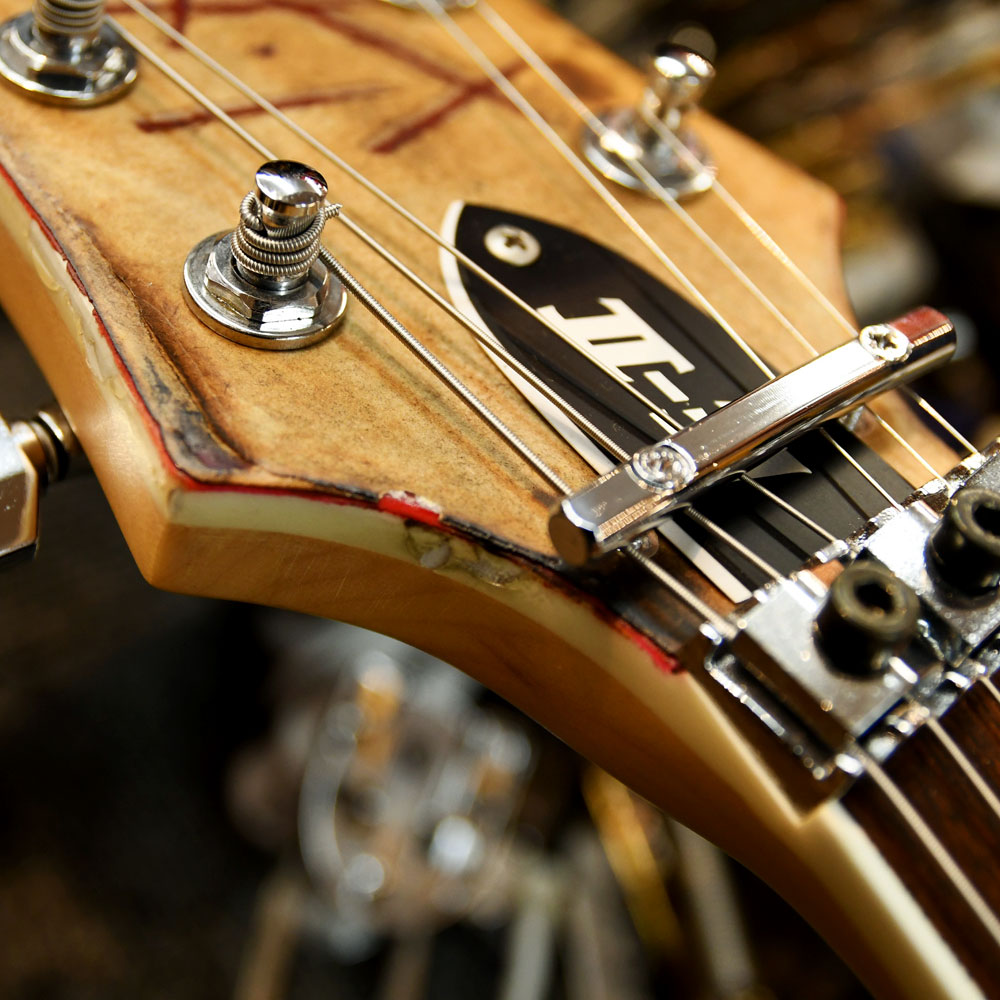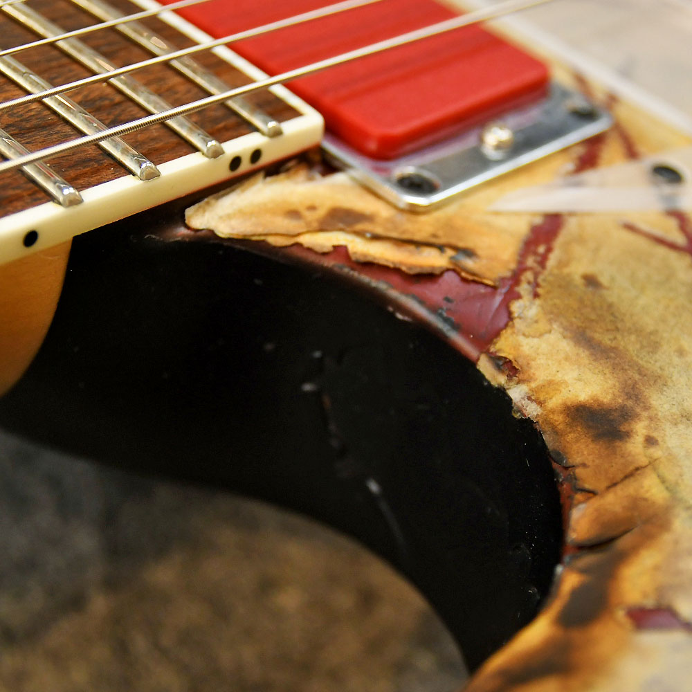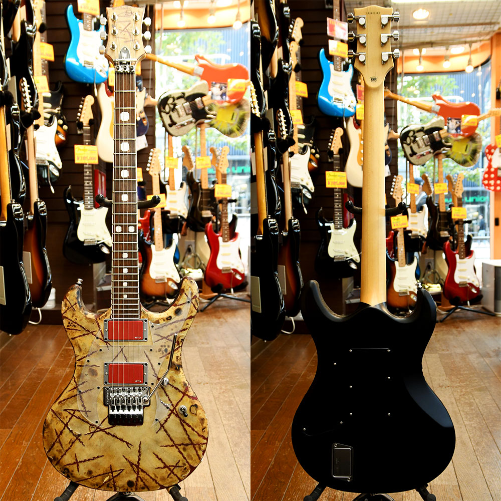 日本国内ではほとんど取扱いのない、RAMMSTEIN のリードギタリスト Richard ZK のシグネイチャーモデル。バンドサウンドを象徴するかのような激しいダメージ加工が施されており、個性的な赤いEMG-81(現行はFishman Fluence Richard Z Signatureシリーズ)を搭載した初期バージョンです。