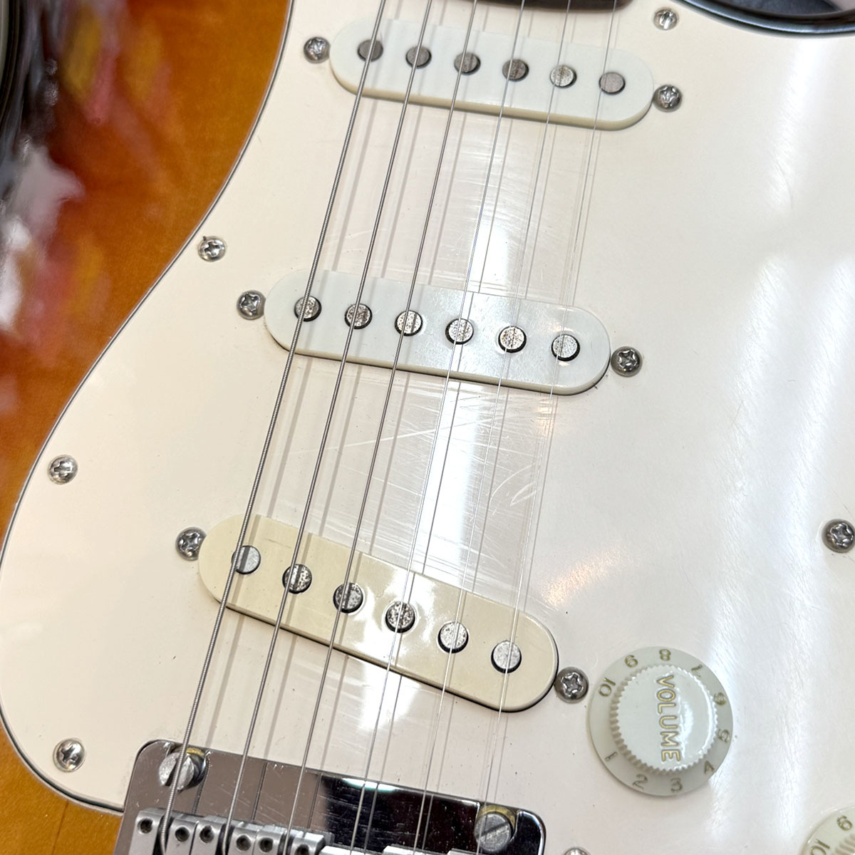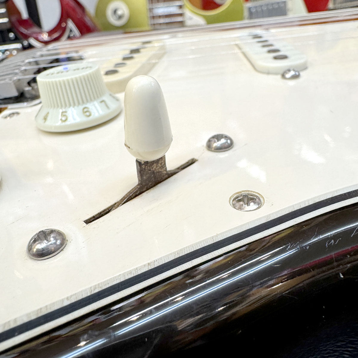 2点指示トレモロユニットにブロックタイプのサドルが特徴的な年代のモデルです。