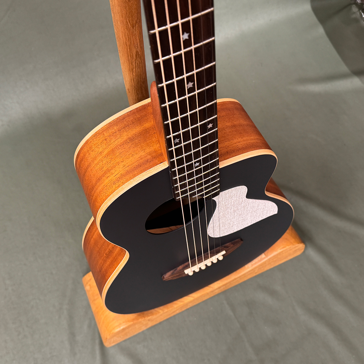 ウクレレ専門メーカーのアヌエヌエが独自のデザインをアイデアを集結させて発売した、ミニギターよりも少しだけ大きめの、大人の方でも抱えやすいと評判のスモールサイズ。ボディージョイントを片方だけ段差をつけることにより、カッタウェイのような演奏性を実現。曲げを入れたデザインよりもお安く提供することができました。