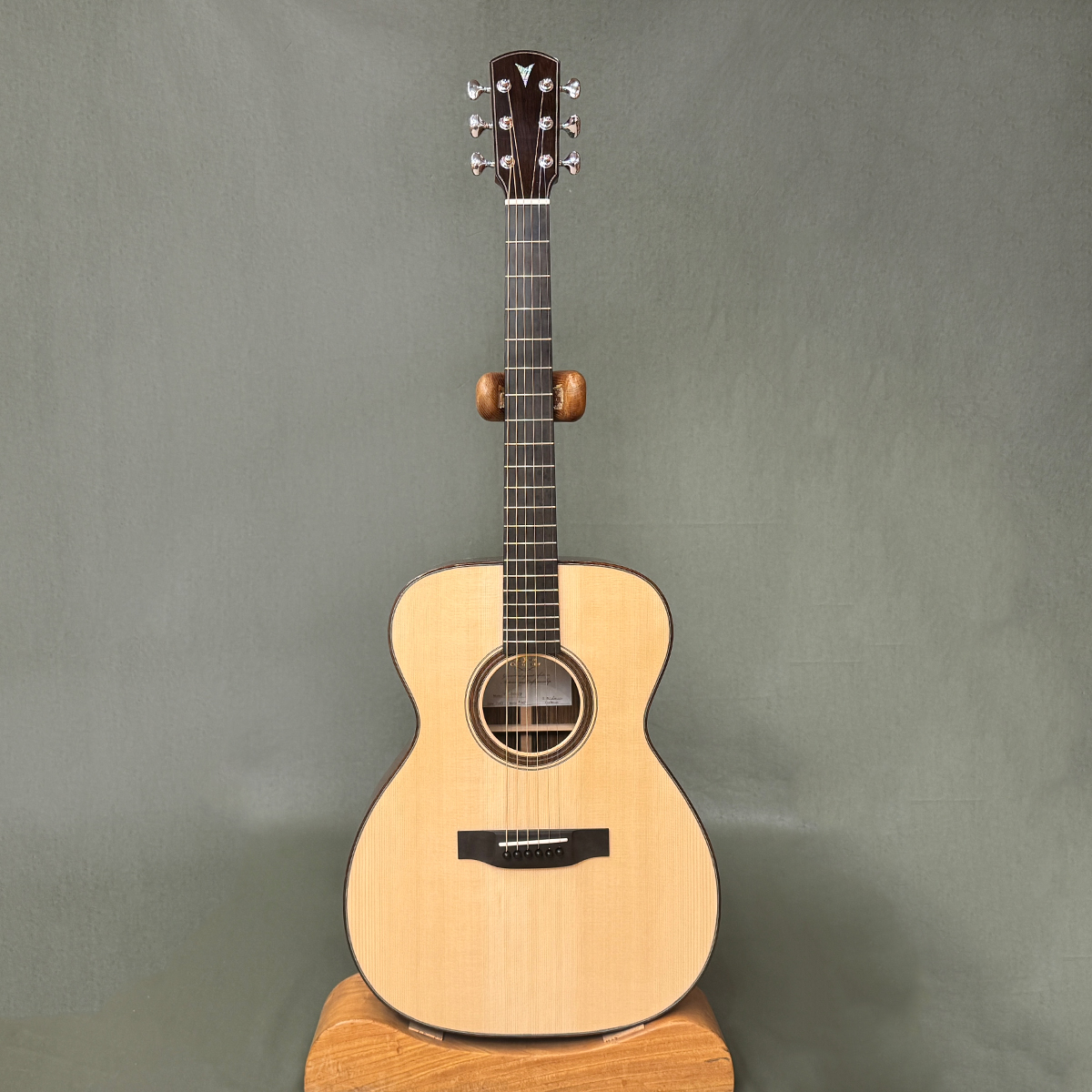 倍音の強い爆音で知られる道前氏のギターの特徴を最大限に生かす目的で弦長の長いOMばかりをオーダーしてきましたが、多くのお客様からの声を今回初めて反映させて頂きました。