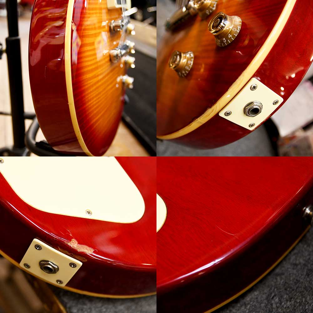 【状態】擦り傷や打痕等が多数あります。ネックに反りはなく、トラスロッドも余裕があります。フレットの残りは7割程度です。ソフトケース付属