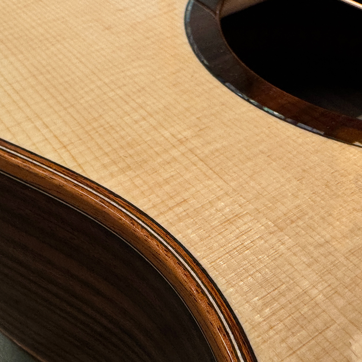 分業制で定められた数だけを生産するという印象の強いヤイリギターですが、個々の職人のノウハウや創造性は高く、独自の考えを組み入れた特別な仕様のモデルを個人作業のみで仕立て上げるのが『ソロワークス』中でも次代を担う若手製作家は多く、Youtubeでも取り上げられている、この澤村氏もその逸材の一人です。