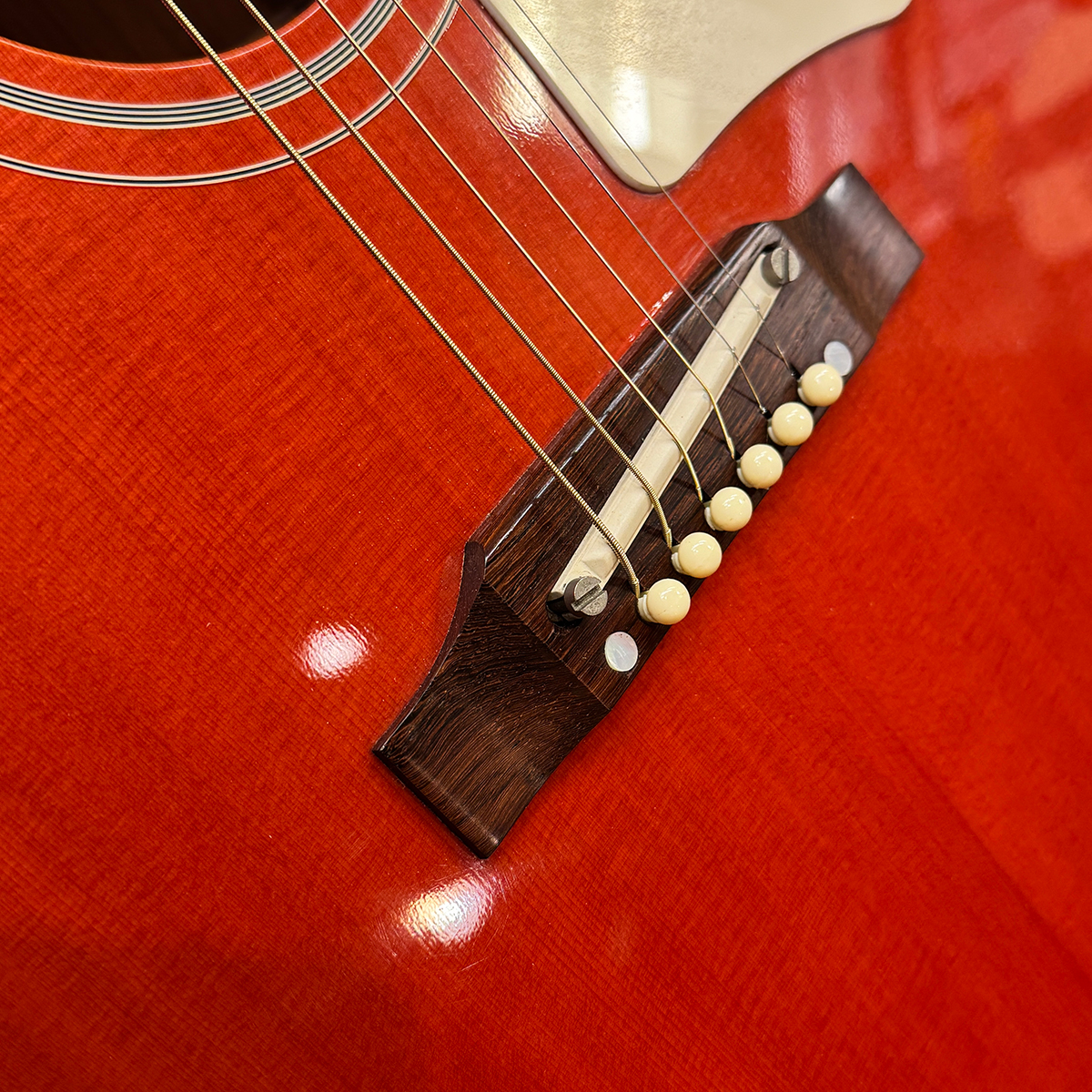 現在のOriginalシリーズの60sに相当するJ-45が当時はカスタムショップでの取り扱いとなっており、当時の正規輸入代理店の山野楽器さんによる木材の選定や仕様の決定などが行われており、年間入荷本数は24本以下と、かなりレアなギターでした。20年前の市場ですので、当然現在よりもかなりクオリティーの高いシトカが用いられているのは言うまでもないでしょう。