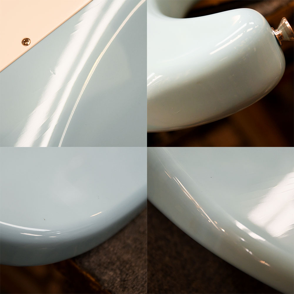 【状態】擦り傷や打痕、導電塗料のあと塗り等があります。ネックに反りはなく、トラスロッドも余裕があります。フレットの残りは6割程度です。※再配線、POT・スイッチ交換ソフトケース付属