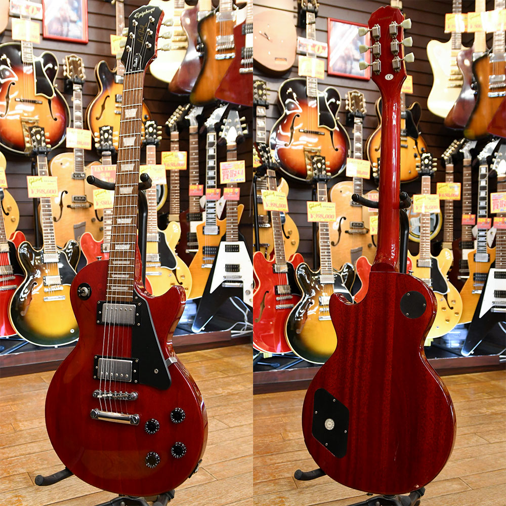 ギブソン社のコストパフォーマンスブランド「エピフォン」によるレスポール・スタジオは、薄型ボディで取り回しの良いモデルです。