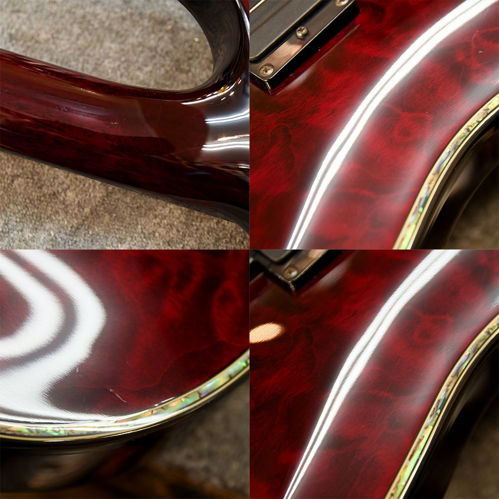 【状態】擦り傷や打痕等が多数あります。ネックに反りはなく、トラスロッドも余裕があります。フレットの残りは7割程度です。※トーンノブ交換ソフトケース付属