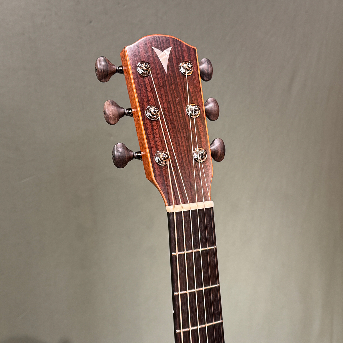 ヘッドとボディーにマホガニーバインディングを施し、ヤイリギターのヘッドロゴを矢じりのみに変更した特注モデル。