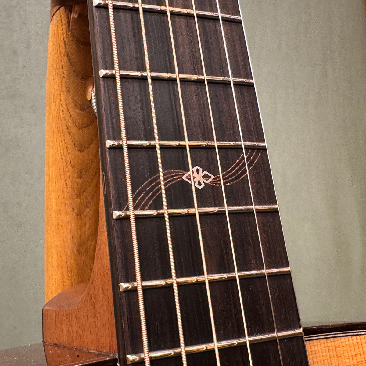 使用中に指板脇のスプルースにクラックが入ったため、製作者本人によって修正していただきました。