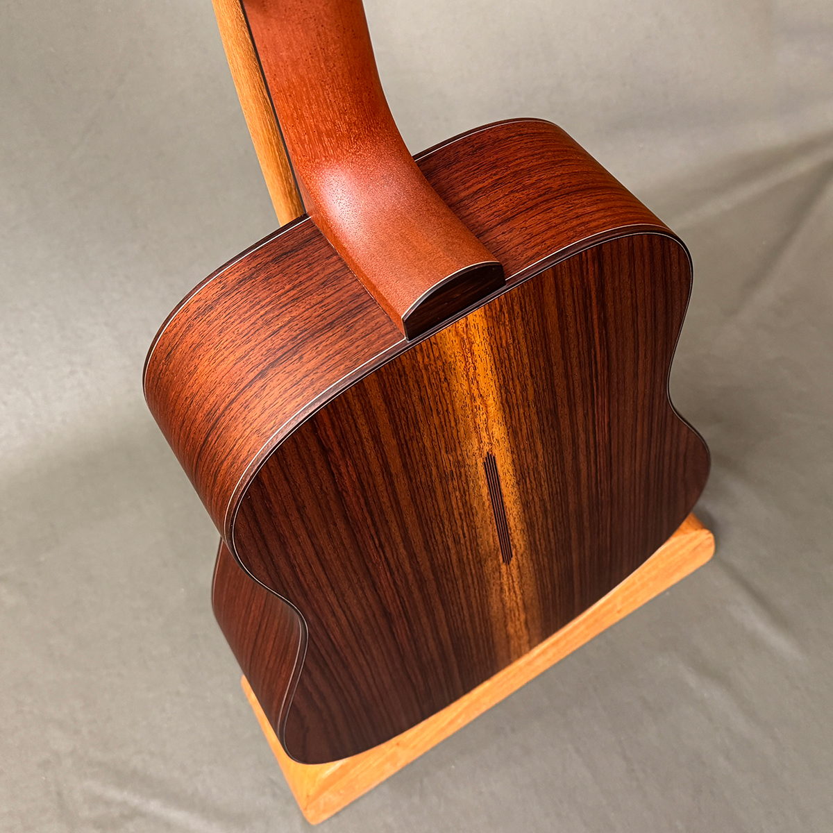 ・表板の振動を端まで届けるための薄仕上げ → プレーン弦のメロディが前に出る、抜けの良いトップエンドが魅力。