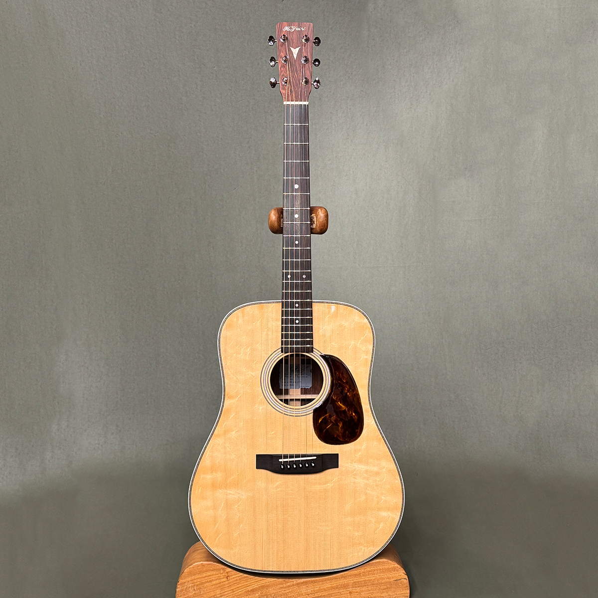 トップには美しいベアクロウ杢を持つスプルース、サイド&バックには近年入手が難しくなったホンジュラスローズウッドを採用しています。