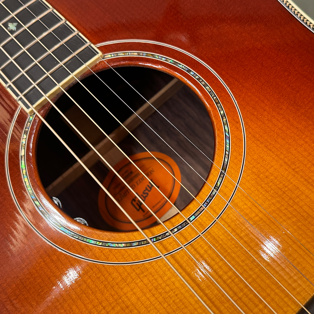 随所に豪華な装飾が施されたカスタムグレードのJ-45となっています。