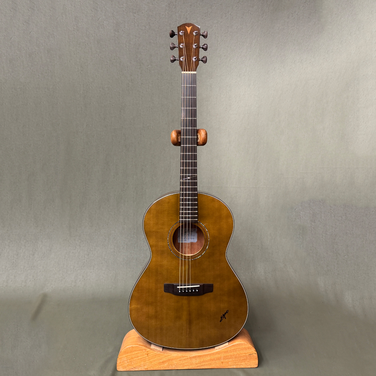 トップ材にはシトカスプルース単板、サイド&バックにはマホガニーを採用し、反応の良い立ち上がりと温かみのある中低域を両立。