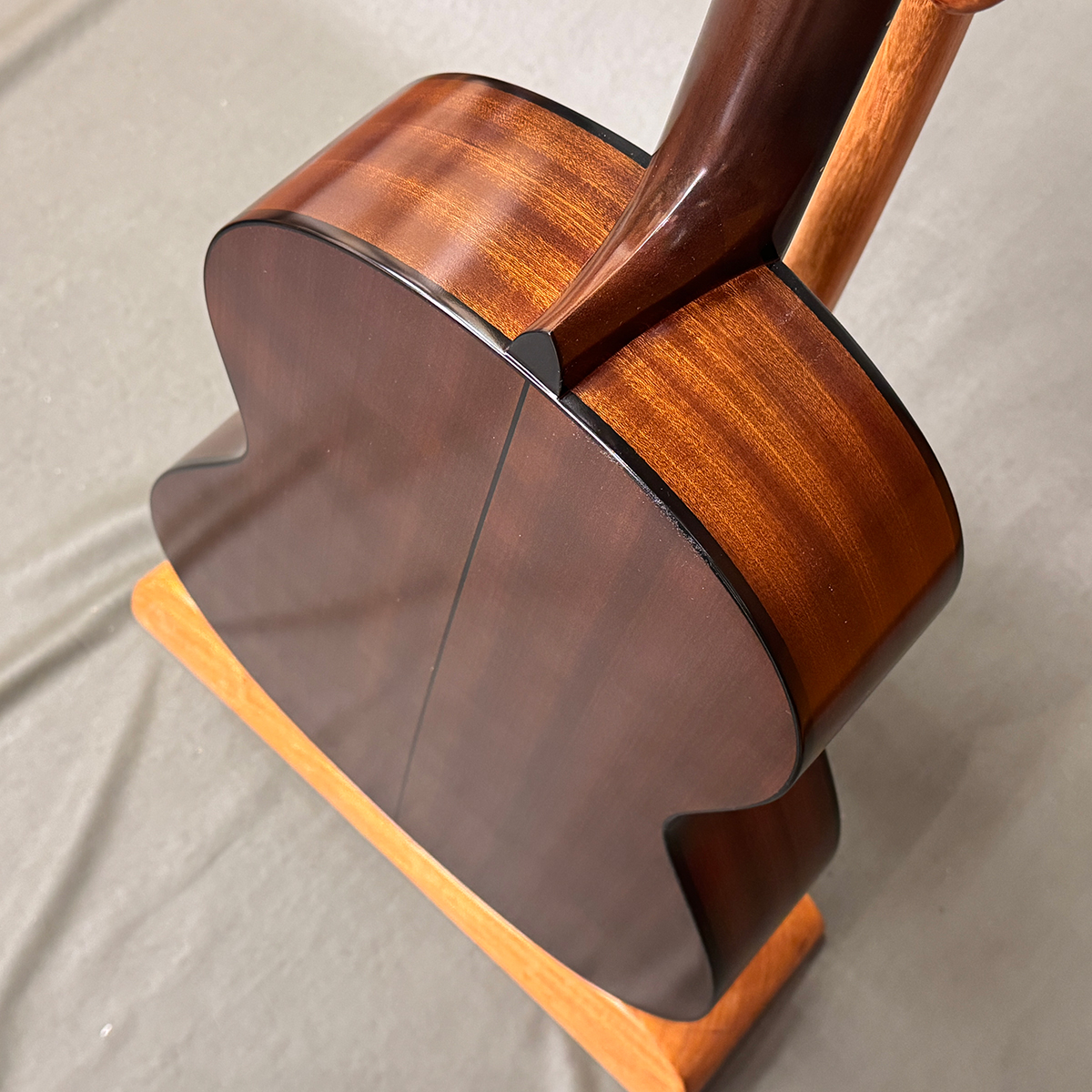 42mmナット幅のネックは、クラシックギターほど太すぎず、フォークギターからの持ち替えでも違和感の少ない握り心地です。