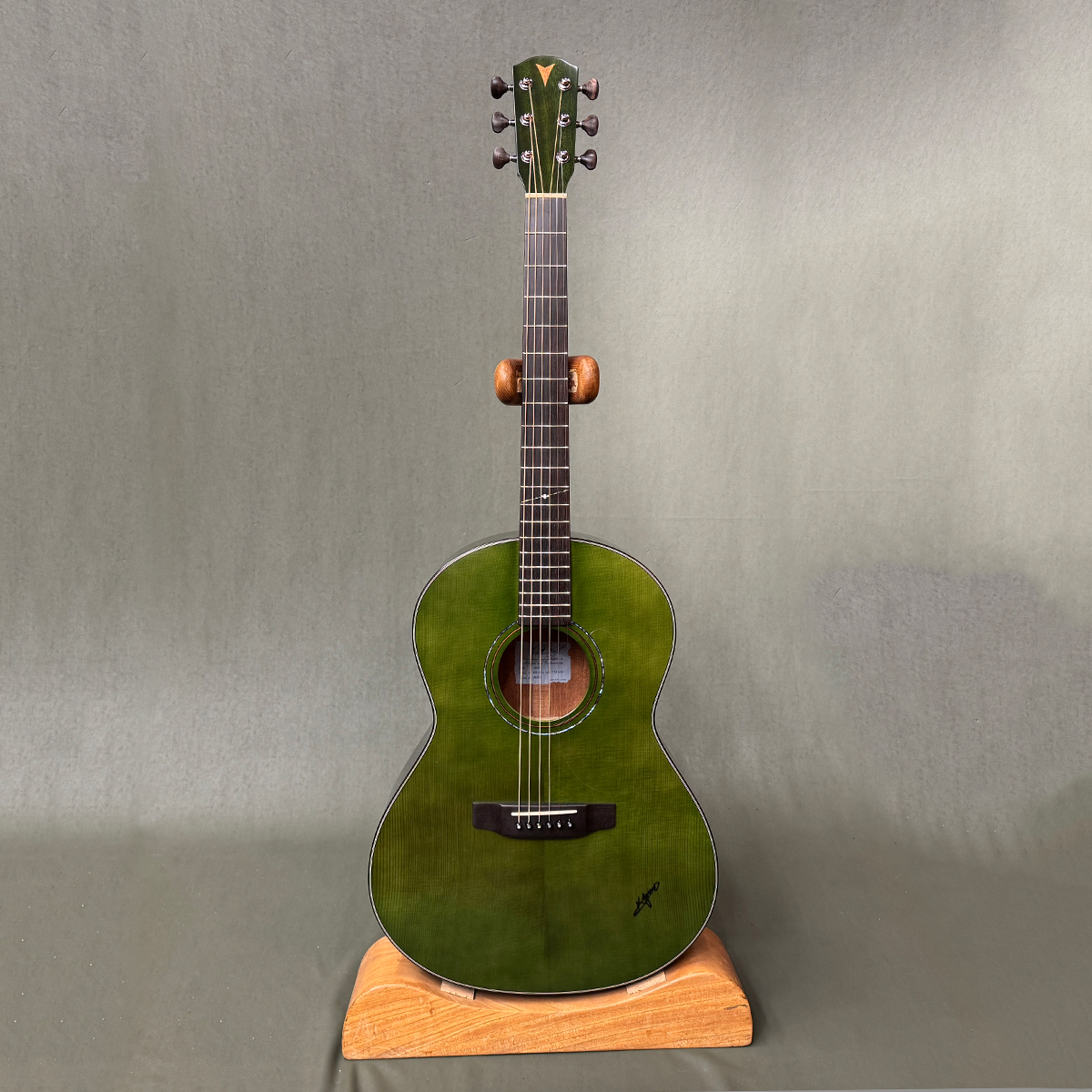 クラシックギターサイズの抱えやすさと、フィンガースタイルに最適なレスポンスを兼ね備えた一本です。