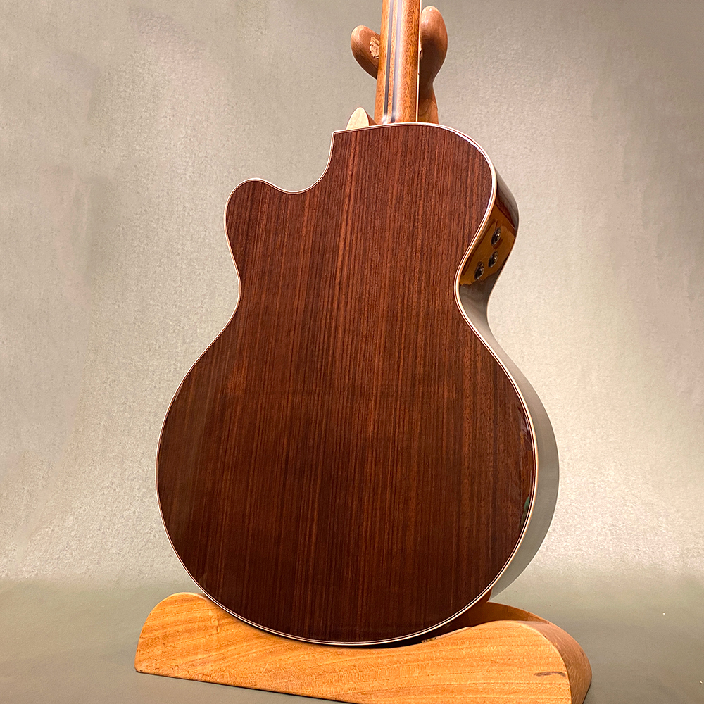 厳選された材と熟練の技が集約された完成度の高いミディアムジャンボタイプのギターです。優れたレスポンスと、幅広い音域で豊かに伸びる音色が特長のイングルマンスプルース単板をボディトップに採用しました。サイド&バックにはインドローズ単板を採用。ノンスキャロップ・Xブレイシング、スクエア・フレーム構造、新開発Cブロックが、ギター全体を力強く響かせ、太くハリのあるサウンドを生み出します。