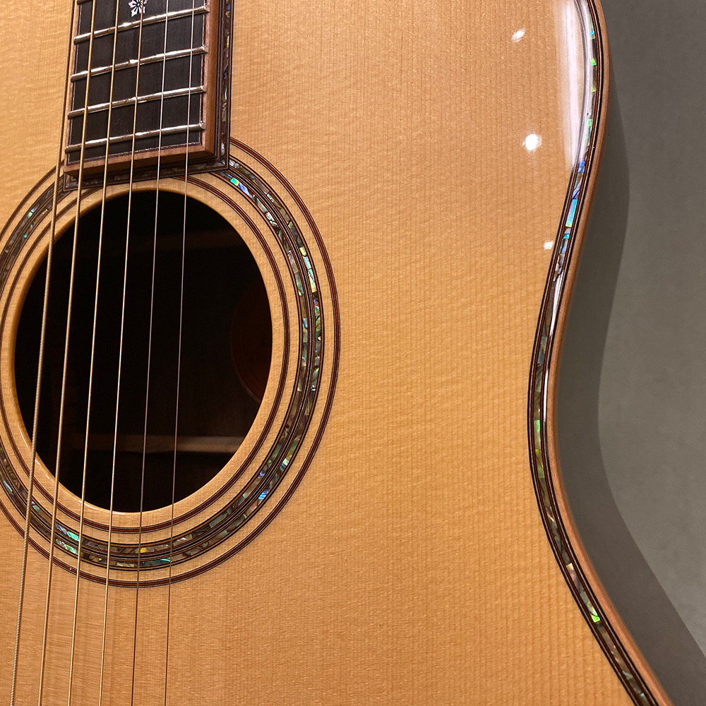 前回入荷の個体をサンプルとして表記していますので、実際の木目とは異なります。 【ジャーマンスプルース、選定材ハカランダ 終了となります】 受注生産のみのヤマハ最高峰モデル LL-86Customを更にカスタマイズした下倉楽器だけの特注品です。 幾度となく静岡の工場にお邪魔し交渉を重ね実現致しました。ヤマハさんお抱えの大御所アーティストからの依頼に備えて隠し持っていた?マスターグレードの最後の材料となります。 表板には同じく厳選してきたジャーマンスプルースを使用し、ネック材はアフリカンマホガニーからホンジュラスへとグレードアップと こだわり抜いた一本。 【仕様】 ・top: Solid German Spruce ・sides & back: Solid Brazilian rosewood ・neck: Honduran Mahogany ・fingerboard & bridge: Ebony ・scale length: 650mm ・nut width: 44mm ・lacquer finish ・専用ハードケース付 ・メーカー3年保証