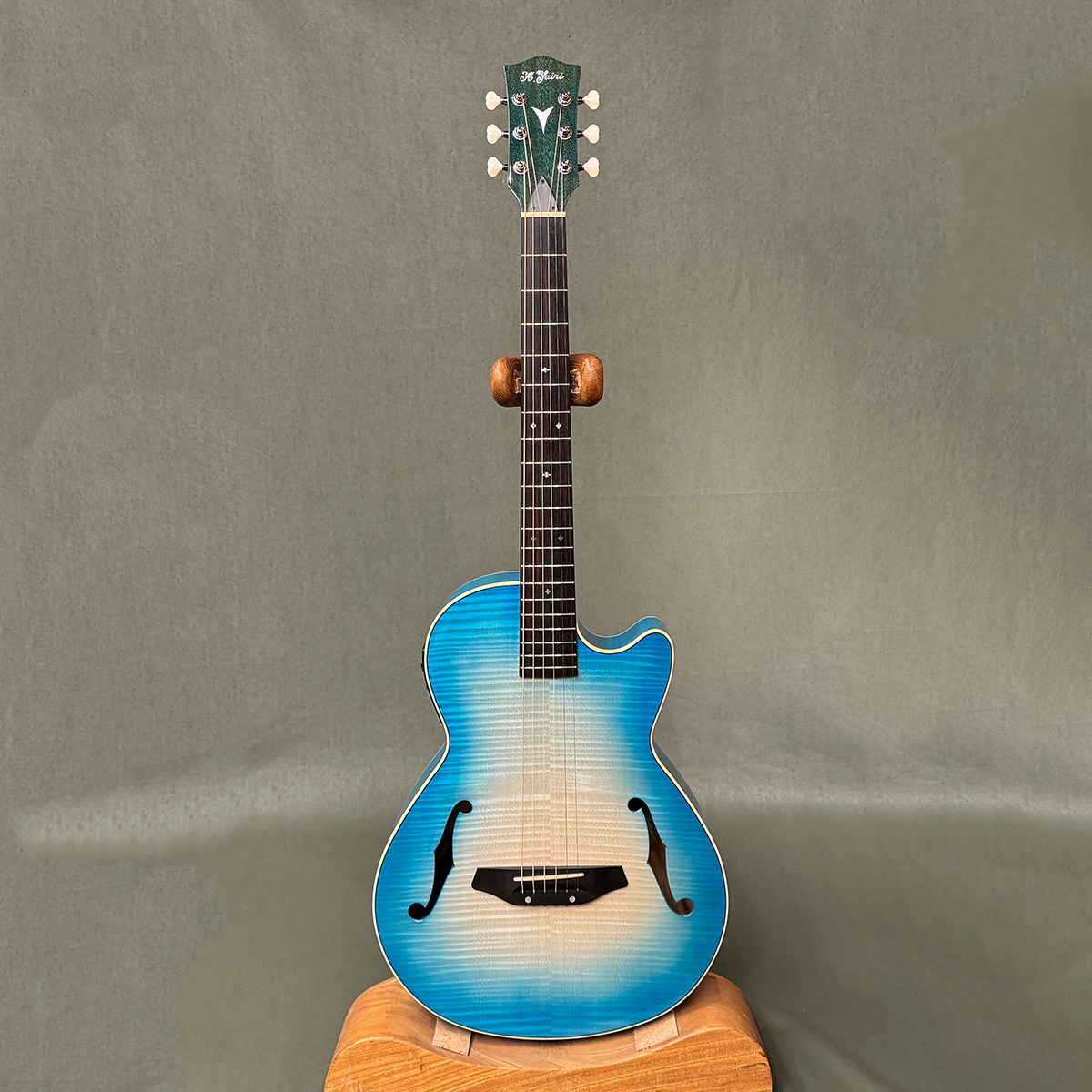 まるでレスポールの様な奥行!奇抜なギターを作らせたら他にはいない、ヤイリギターの特殊エレアコKYFシリーズ。バイオリンやジャズギターのようなF字型のサウンドホールはデザイン性も兼ねていますが、ステージでのハウリングを防ぐために考案されたもので、ボディー内部の共鳴もできる限り抑えられた構造になっております。自宅での音出しにも最適です。