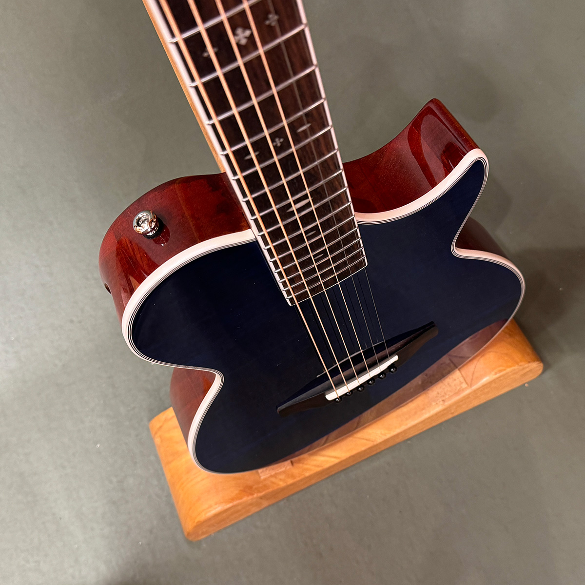 ボディーの厚さわずか5.5mmと非常に薄胴で、エレキギターのように扱えるエレアコです。アメリカのピックアップメーカー、FISHMANのパッシブピックアップが搭載され、電池を使わずにエレアコの機能を楽しむことが可能で。
