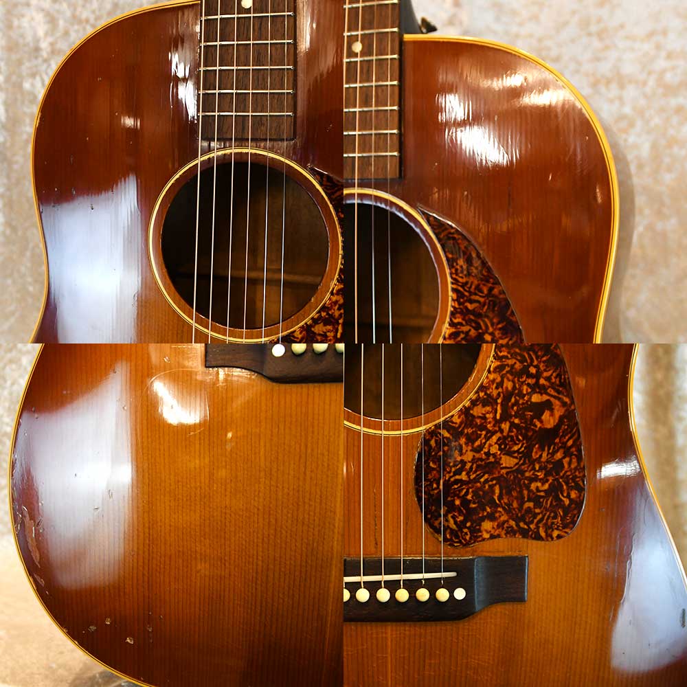 1953年製のボディに、1960年代後半の1ピースマホガニーのナローネックを取り付けたギブソンJ-45のコンバージョンです。