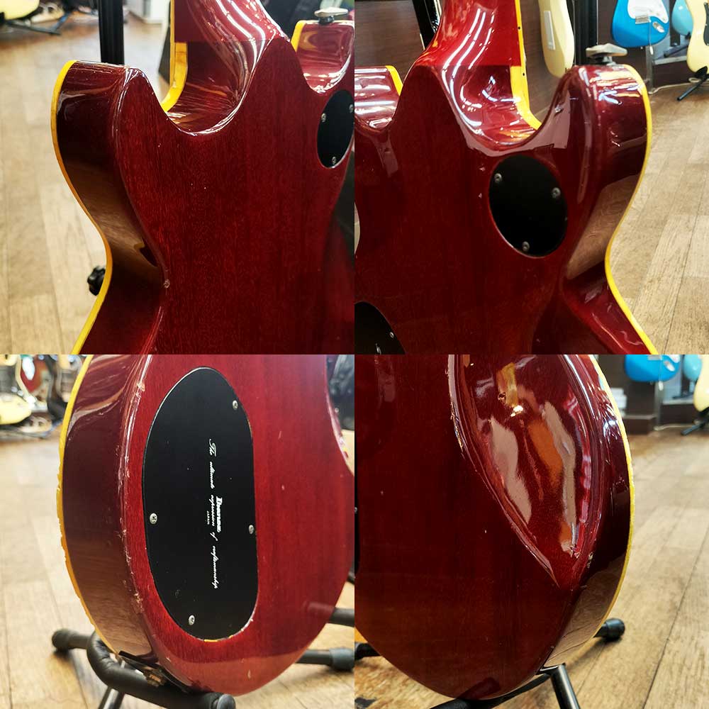【状態】擦り傷や打痕、バインディングのヒビ等が多数あります。ネックに反りはなく、トラスロッドも余裕があります。フレットの残りは7割程度です。ソフトケース付属
