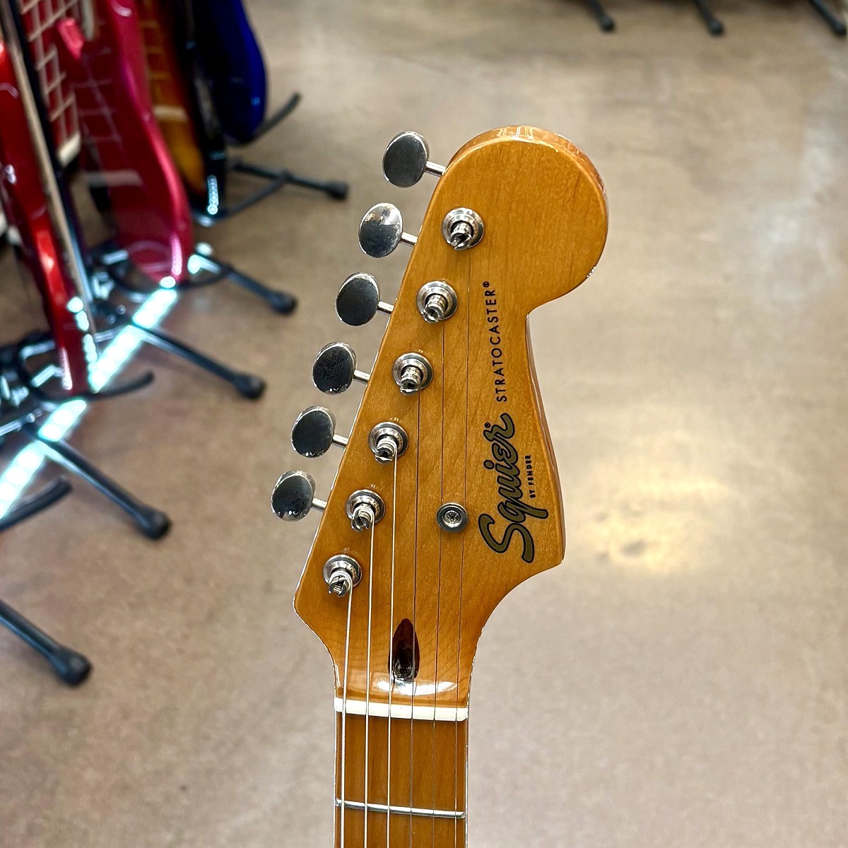 エントリークラスとして人気の高い Squier から、ホワイトブロンドカラーのストラトキャスターが入荷!