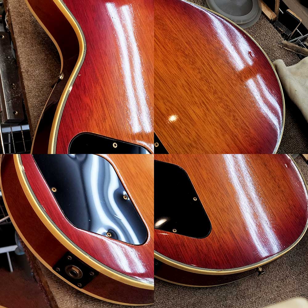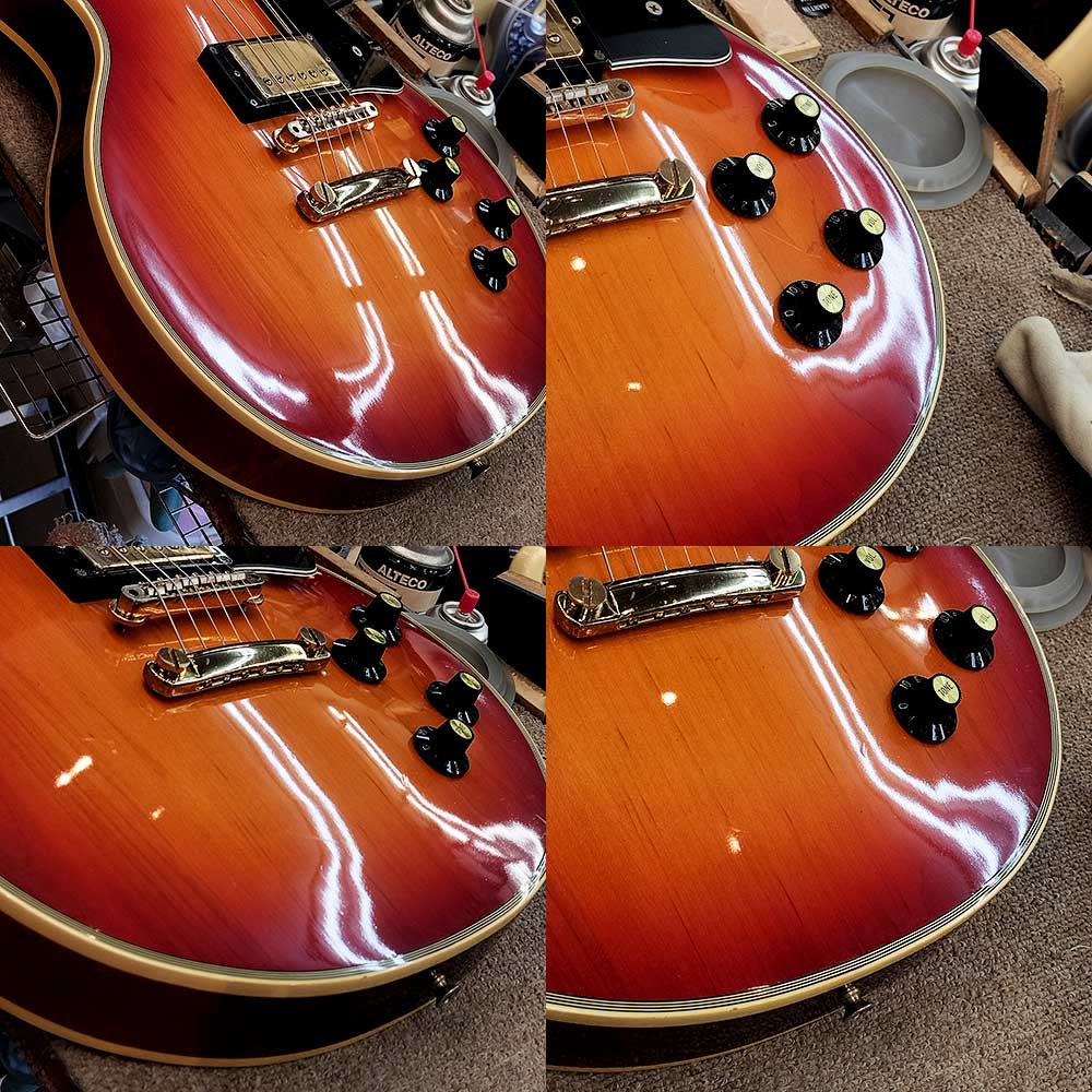 【状態】擦り傷や打痕、塗装の白濁等があります。ネックに反りはなく、トラスロッドも余裕があります。フレットの残りは7割程度です。ソフトケース付属