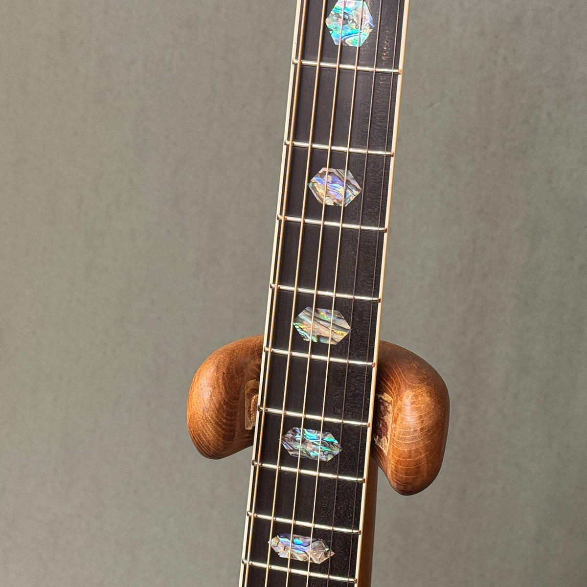 通常のニューヨーカーとは異なり、14フレットジョイントです。ブレットシェイプのまま接続を14フレットにしていますので、他社製の00に比べても音量があります。