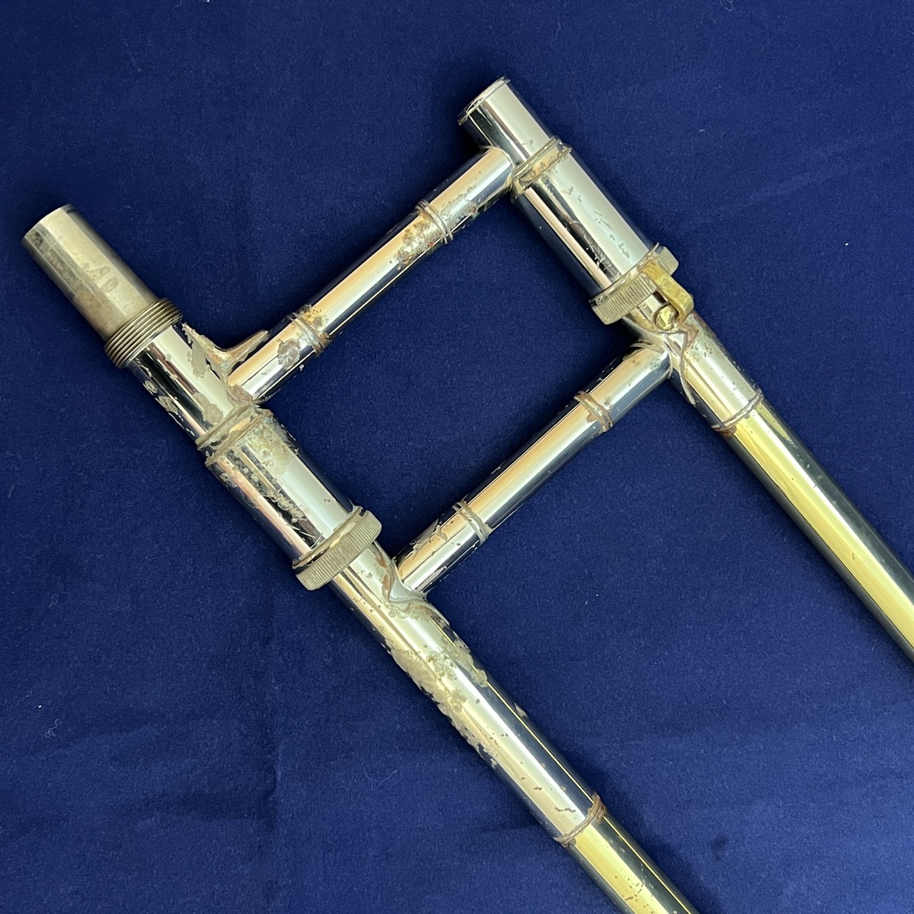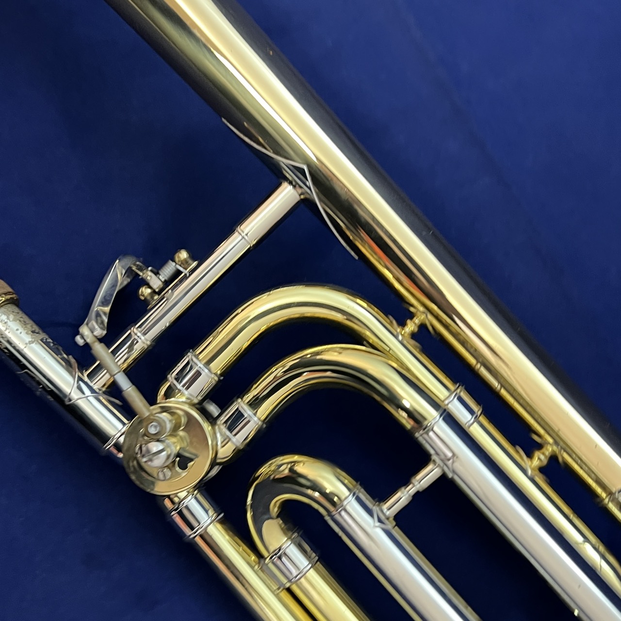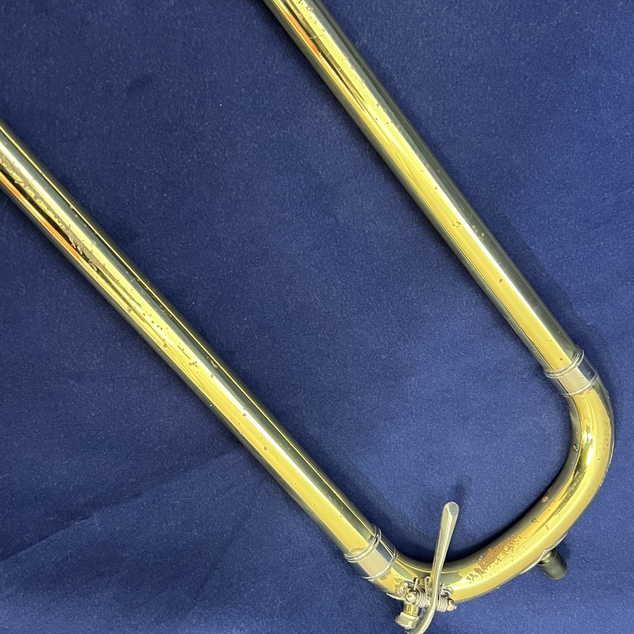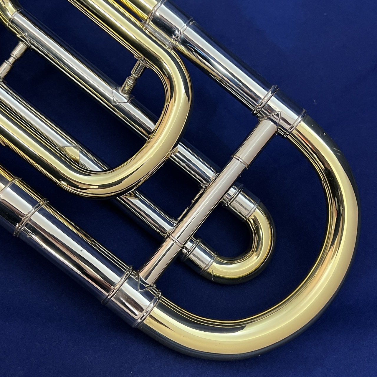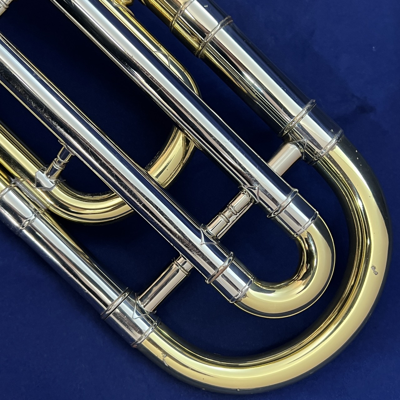 Bach社 42BGBのテナーバストロンボーンの中古品になります。ベルフレア部分にシミがあります。持ち手部分はラッカー塗装剥げがあり全体的に使用感があります。