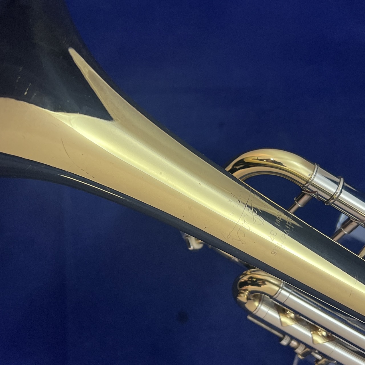 ベルフレア部にシミがあります。、管体、ベルフレアにややキズ、ラッカー塗装剥げが見受けられます。
