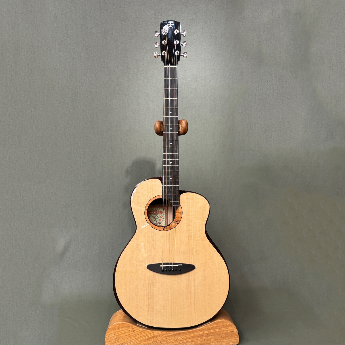 エボニー天神とスポルテッドマンゴーの口輪が、まるでルシアーギターのようなワンランク上の存在感を放ちます。