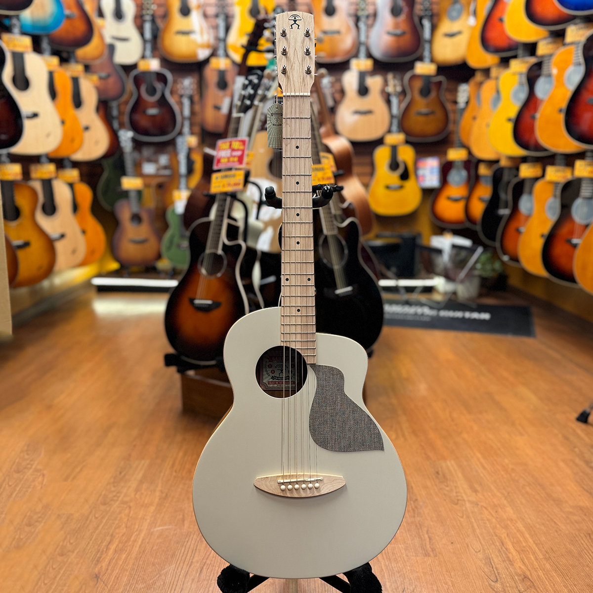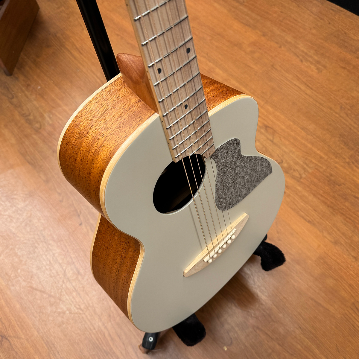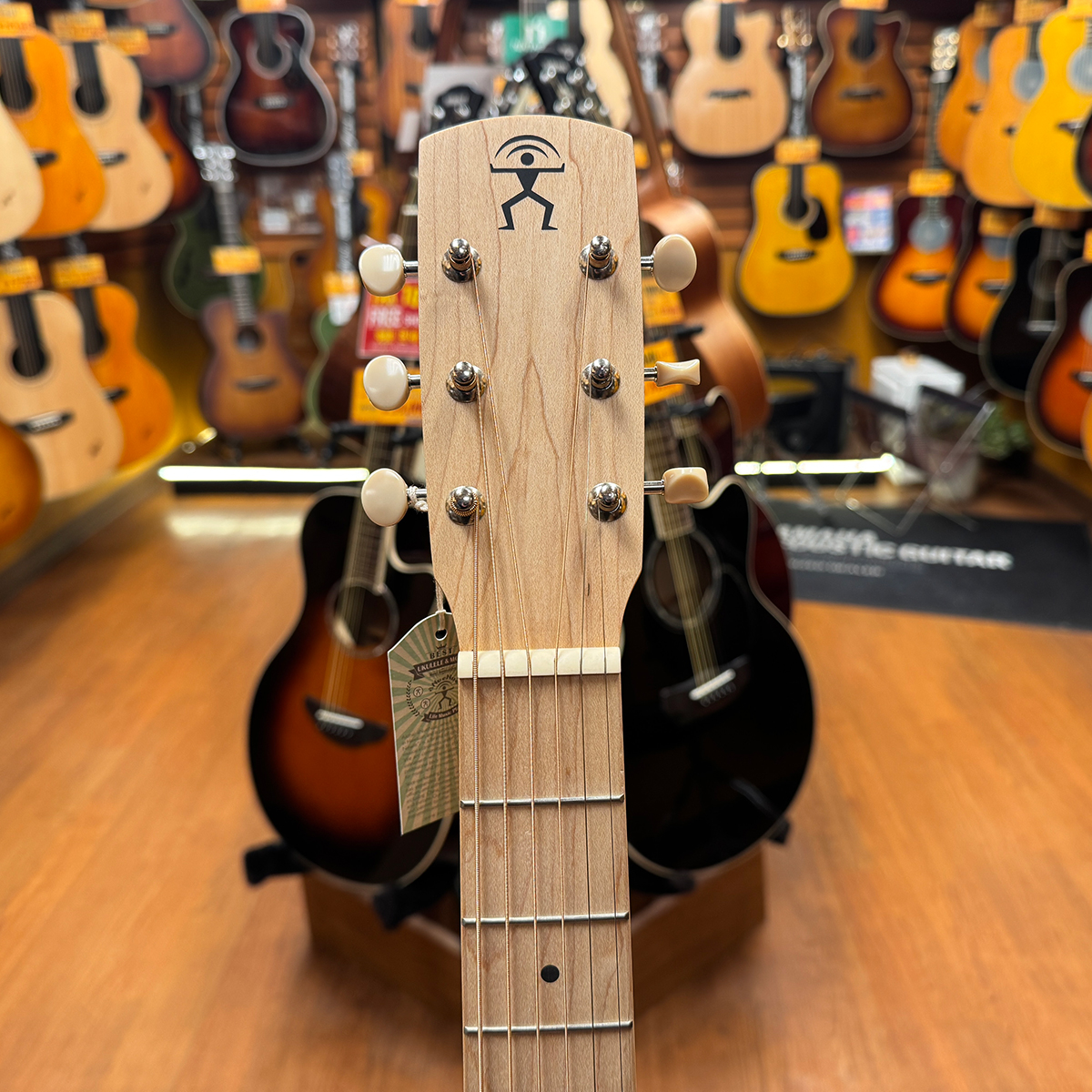 ウクレレ専門メーカーのアヌエヌエが独自のデザインをアイデアを集結させて発売した、ミニギターよりも少しだけ大きめの、大人の方でも抱えやすいと評判のスモールサイズ。ボディージョイントを片方だけ段差をつけることにより、カッタウェイのような演奏性を実現。曲げを入れたデザインよりもお安く提供することができました。