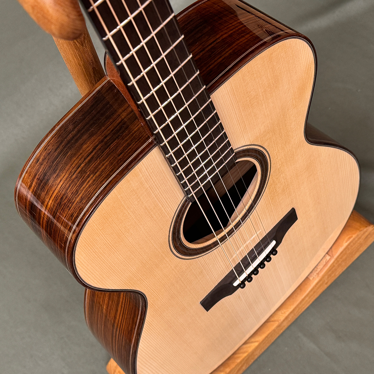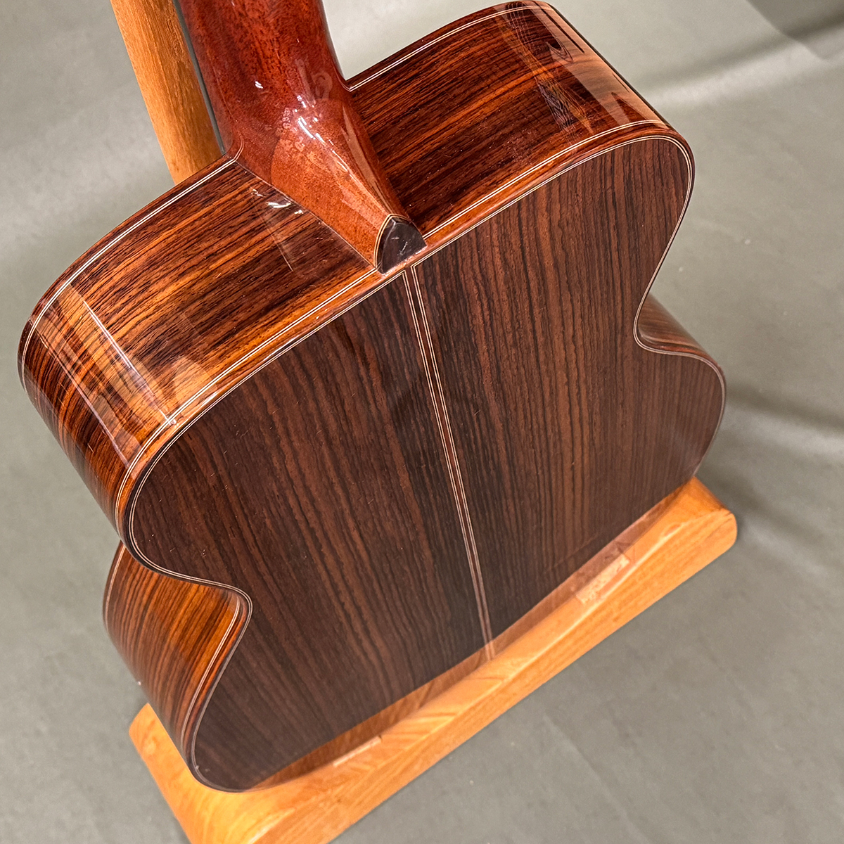 その中でも未来のマスタークラフトマンと謳われる、道前氏によって製作されたインドローズ単板をサイドバックに用いたOOO28が入荷しました。