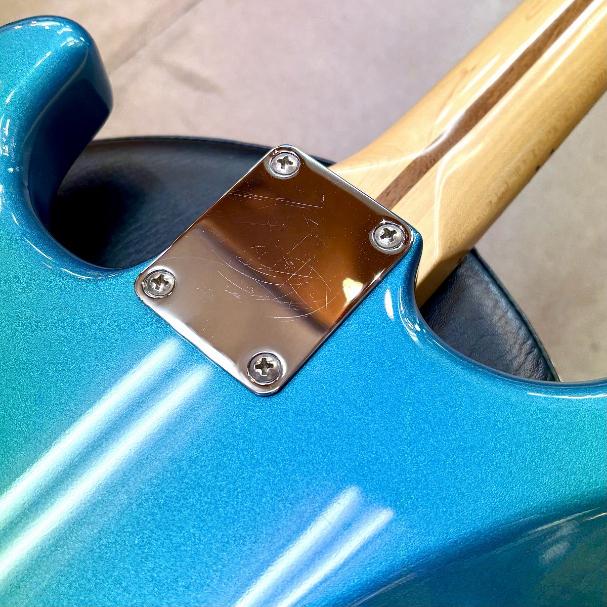 アルダーボディにサテンフィニッシュの1ピースメイプルネックを採用。