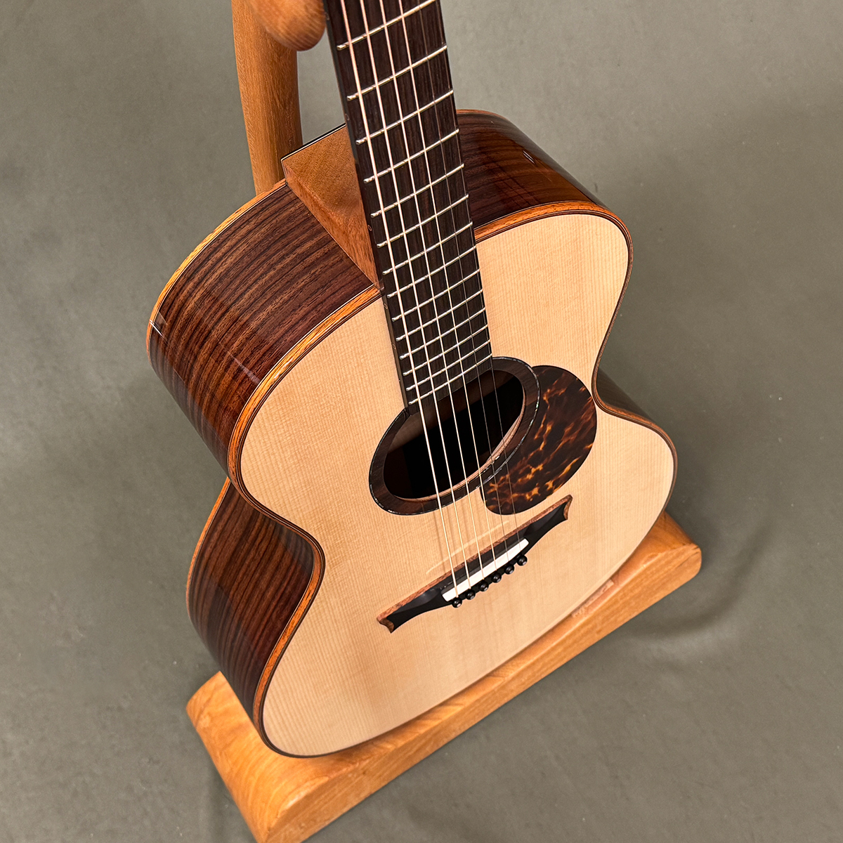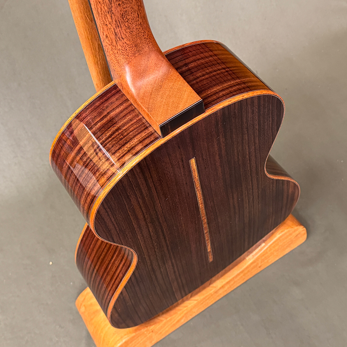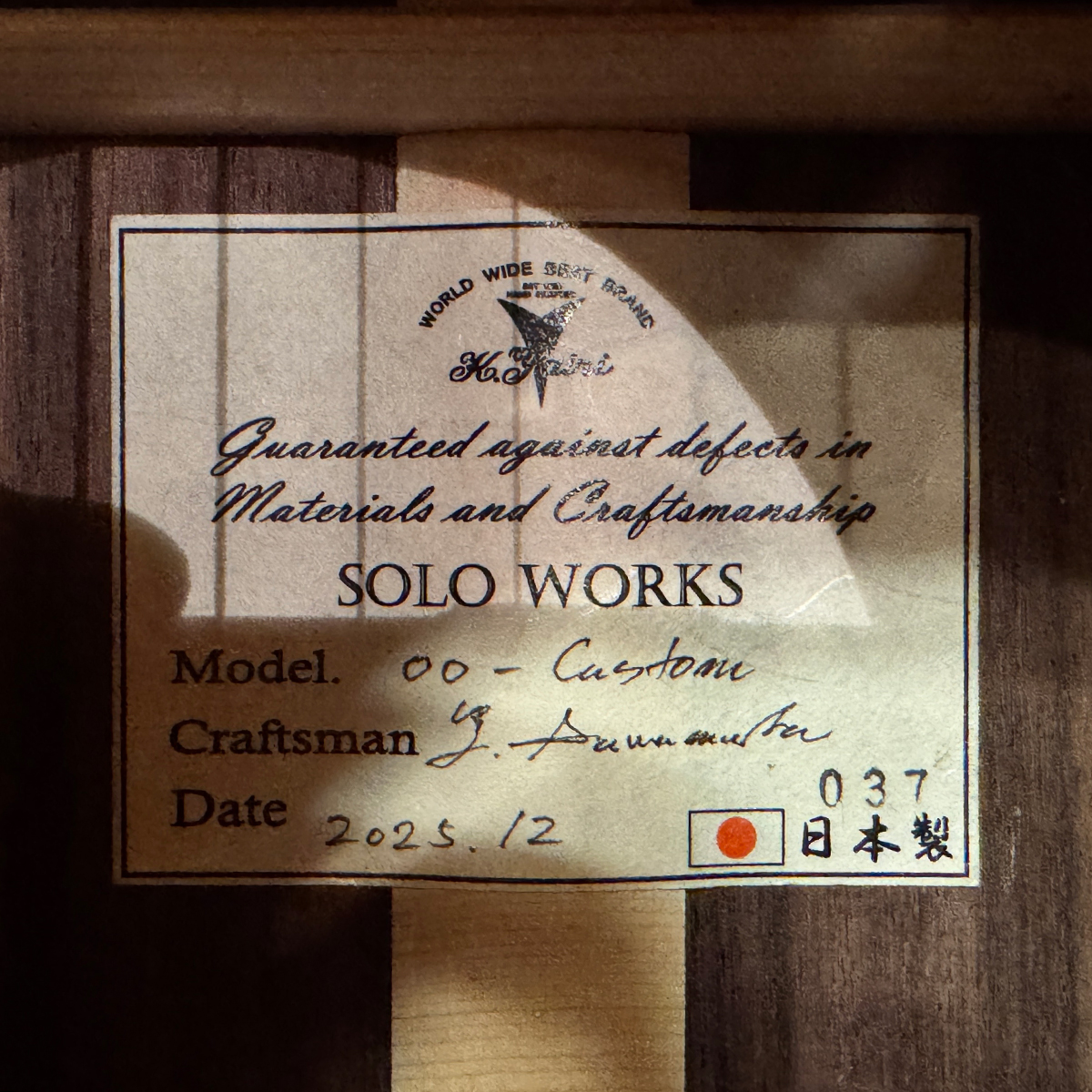 分業制で定められた数だけを生産するという印象の強いヤイリギターですが、個々の職人のノウハウや創造性は高く、独自の考えを組み入れた特別な仕様のモデルを個人作業のみで仕立て上げるのが『ソロワークス』中でも次代を担う若手製作家は多く、Youtubeでも取り上げられている、この澤村氏もその逸材の一人です。
