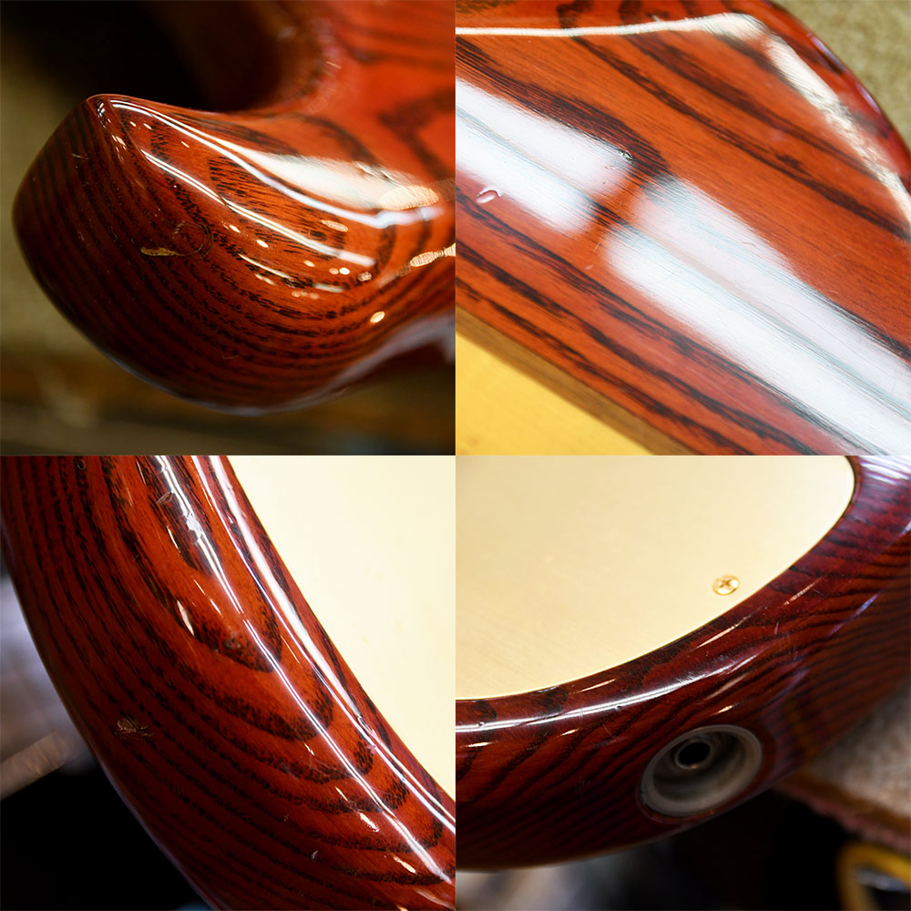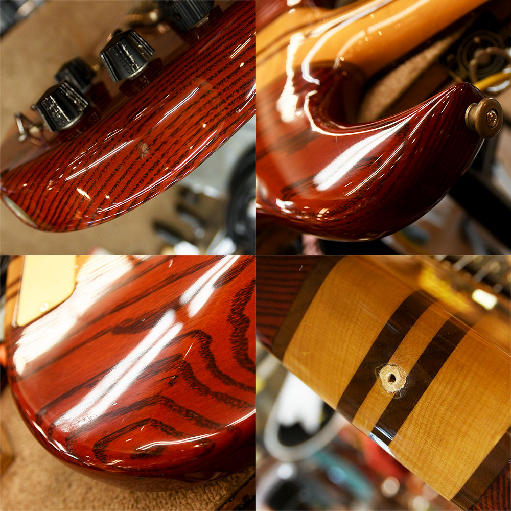 【状態】擦り傷や打痕等が多数あります。ネックに反りはなく、トラスロッドも余裕があります。フレットの残りは6割程度です。※フレット削れあり、エンドピン穴埋めありソフトケース付属